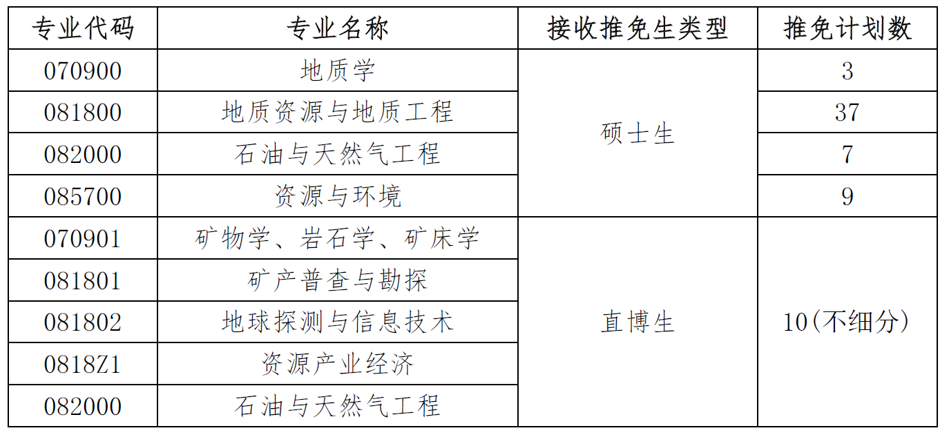 二、接收推免生学科专业及计划