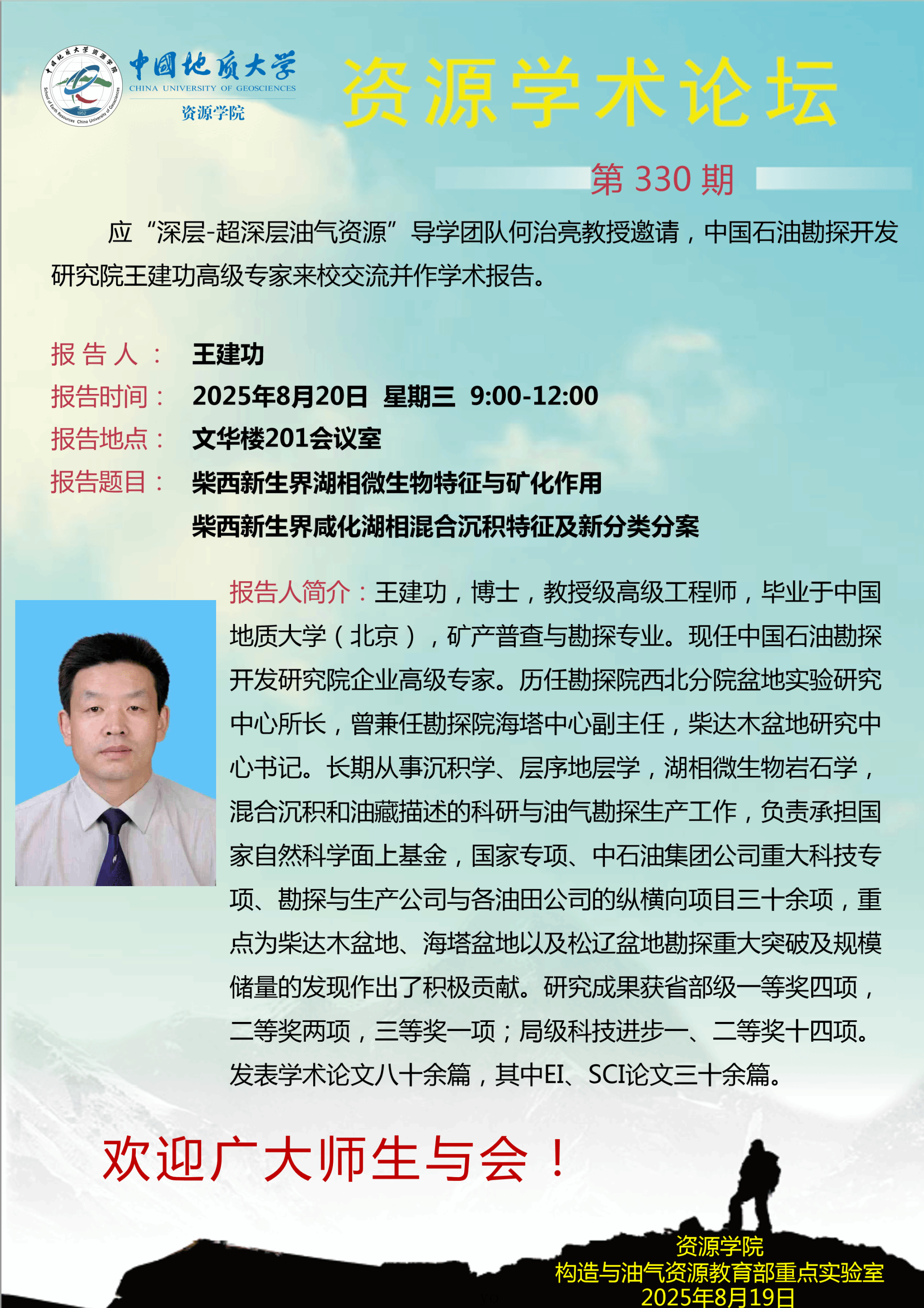 【8月20日】第330期资源学术论坛:王建功学术报告