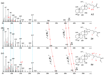 图2、全二维气相色谱-飞行时间质谱碎片离子结构解析