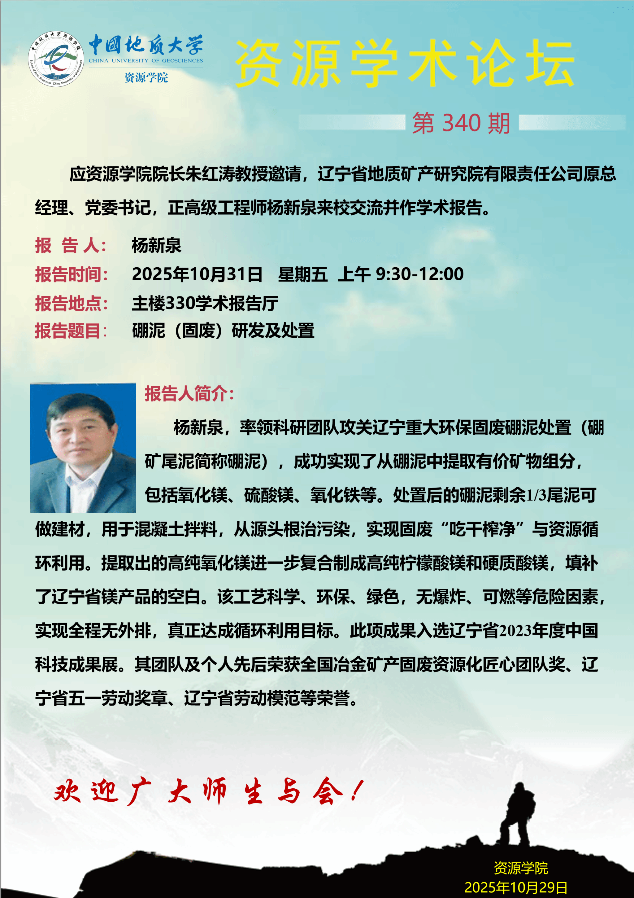【10月31日】第340期资源学术论坛:杨新泉学术报告