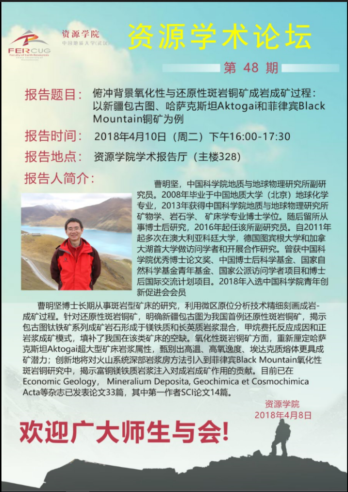 [4月10日]第48期资源学术论坛:曹明坚学术报告