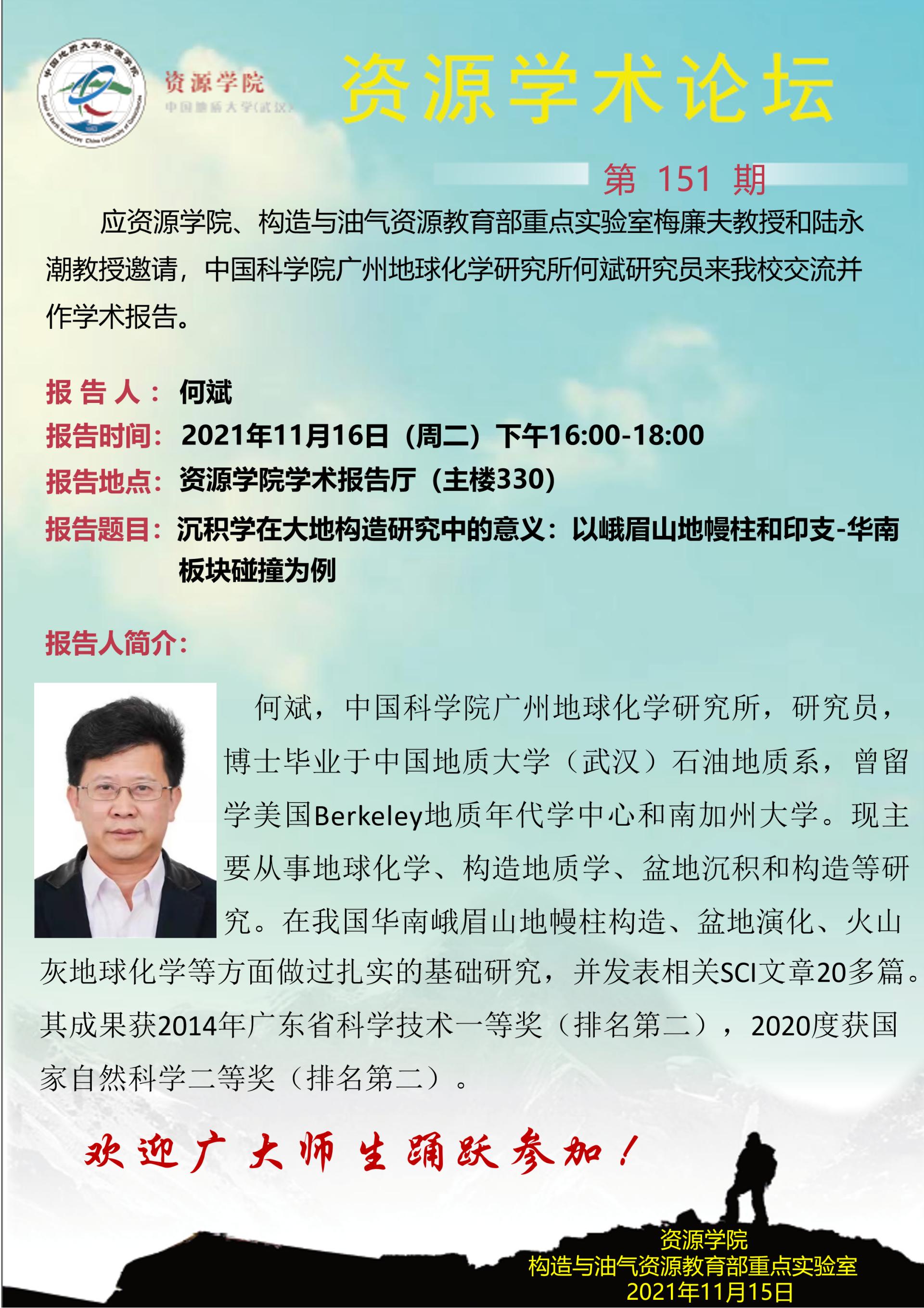 【11月16日】第151期资源学术论坛:何斌学术报告