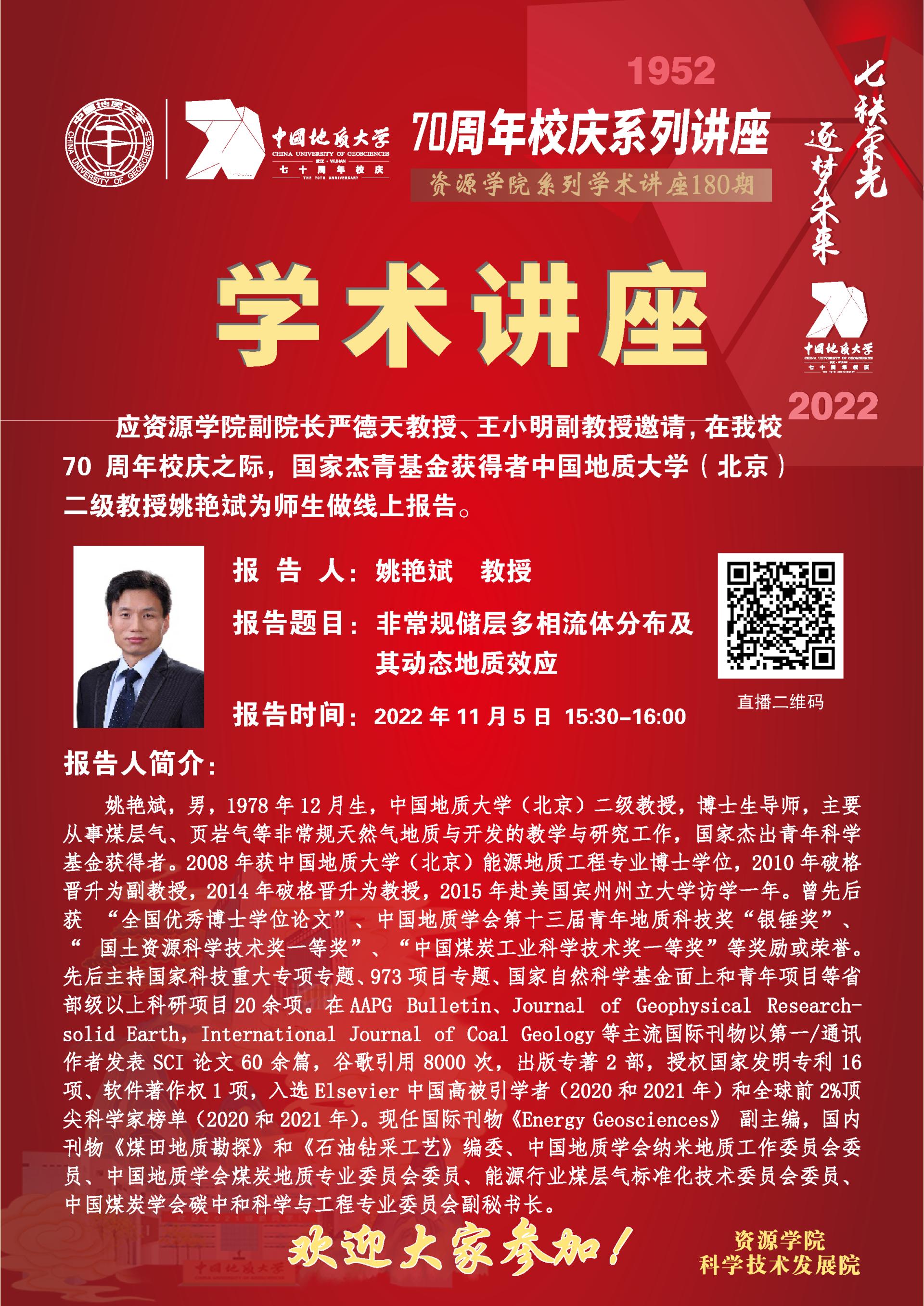 【11月5日】第180期资源学术论坛:姚艳斌学术报告