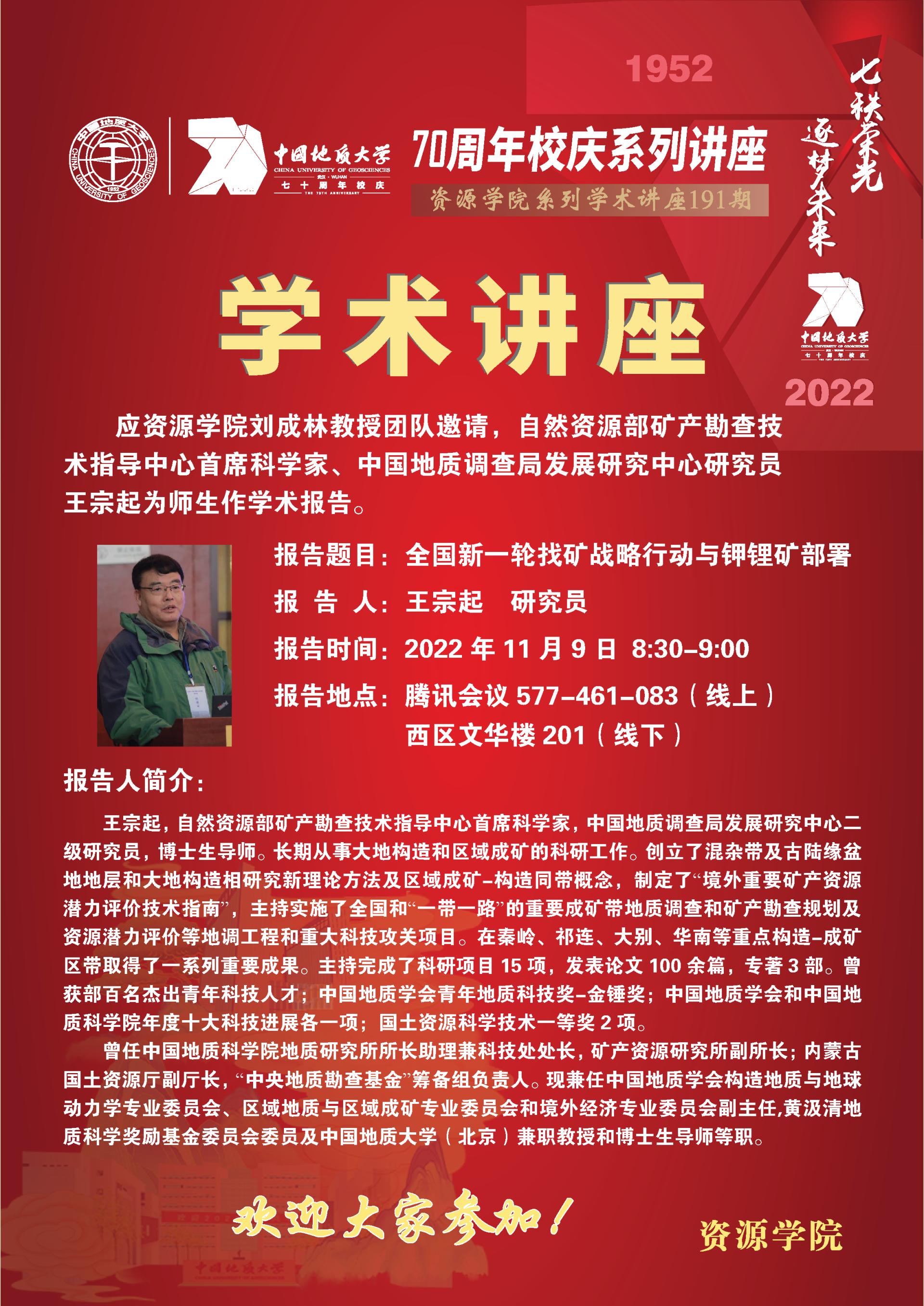 【11月9日】第191期资源学术论坛:王宗起学术报告