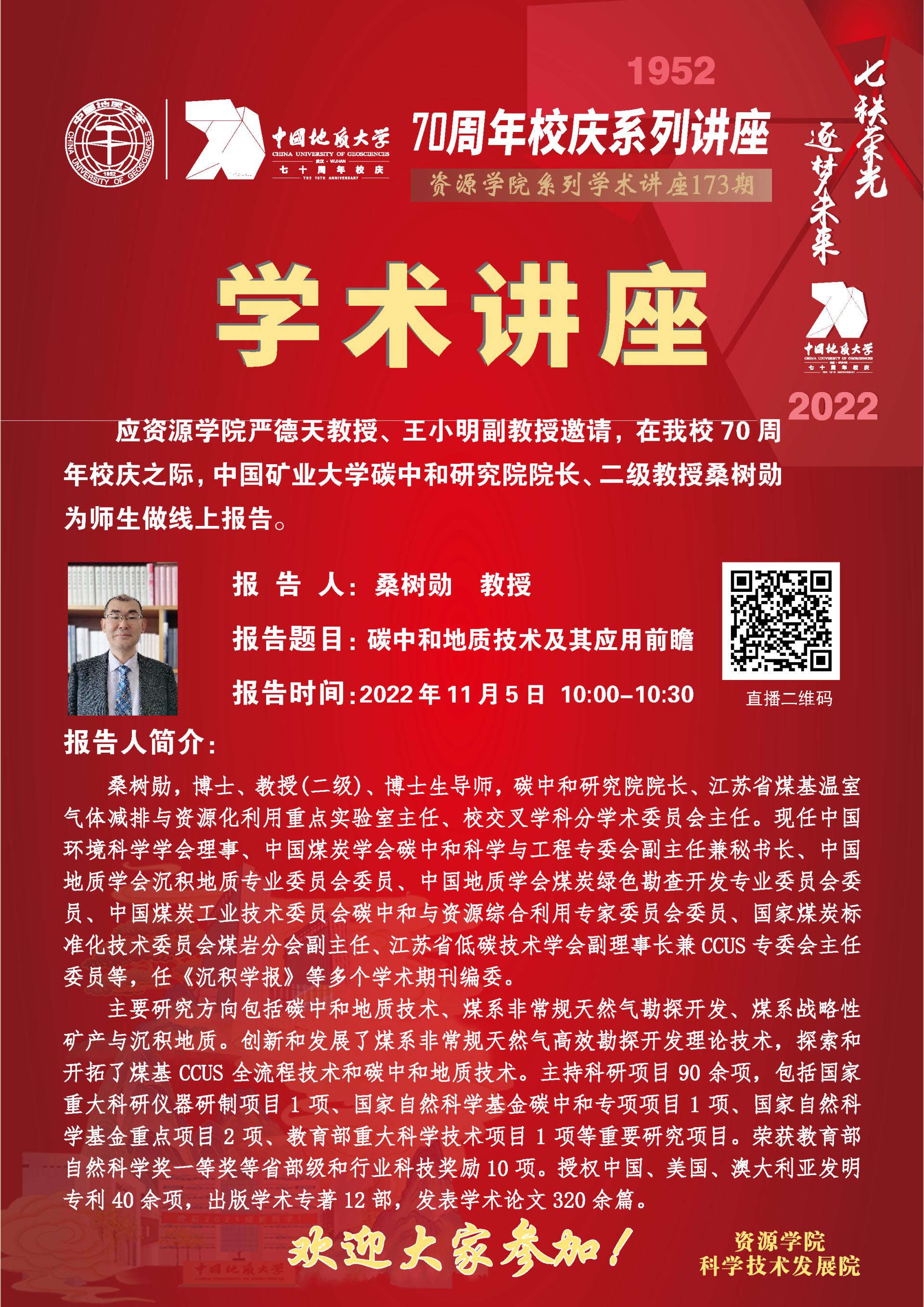 【11月5日】第173期资源学术论坛:桑树勋学术报告