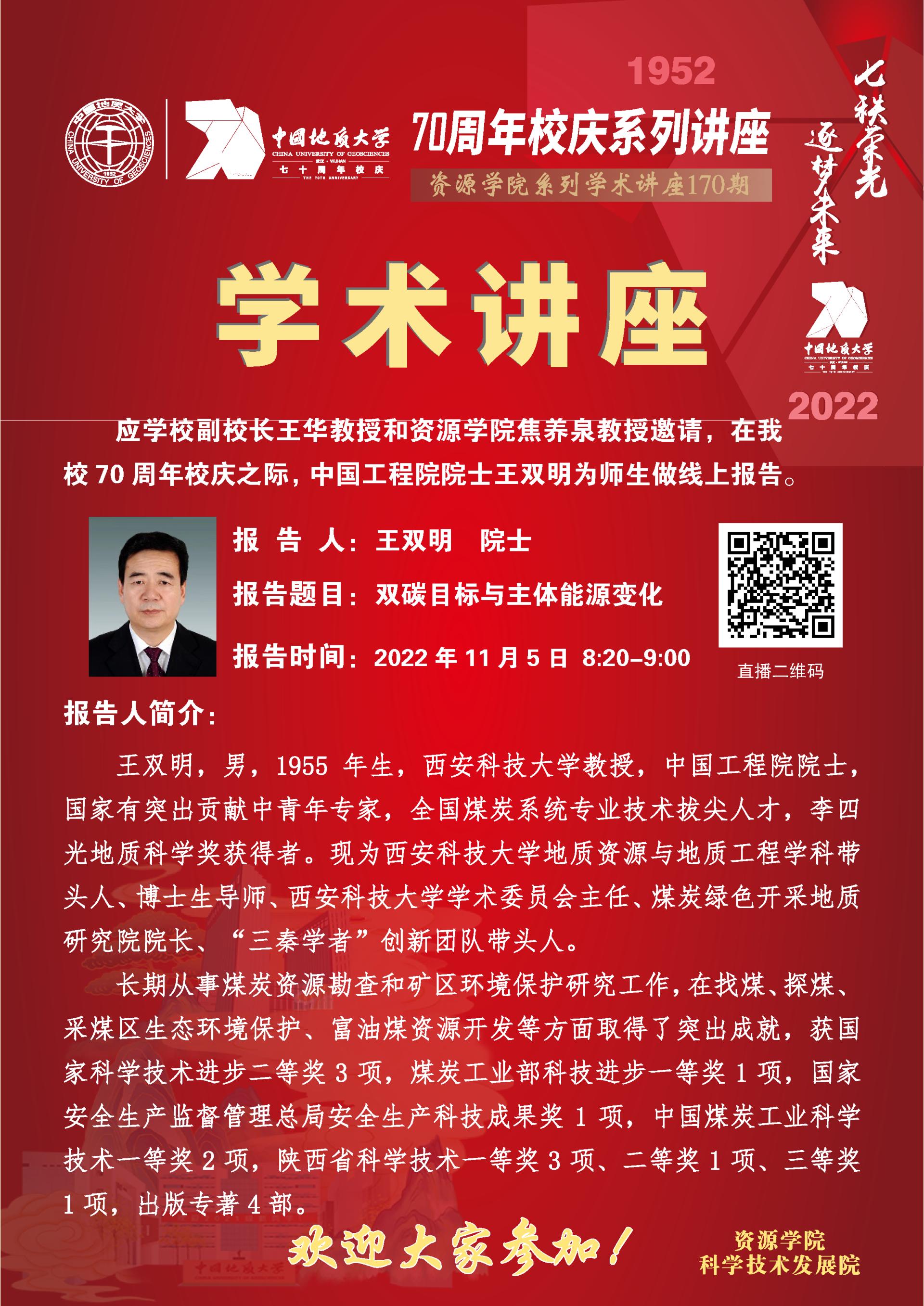 【11月5日】第170期资源学术论坛:王双明学术报告