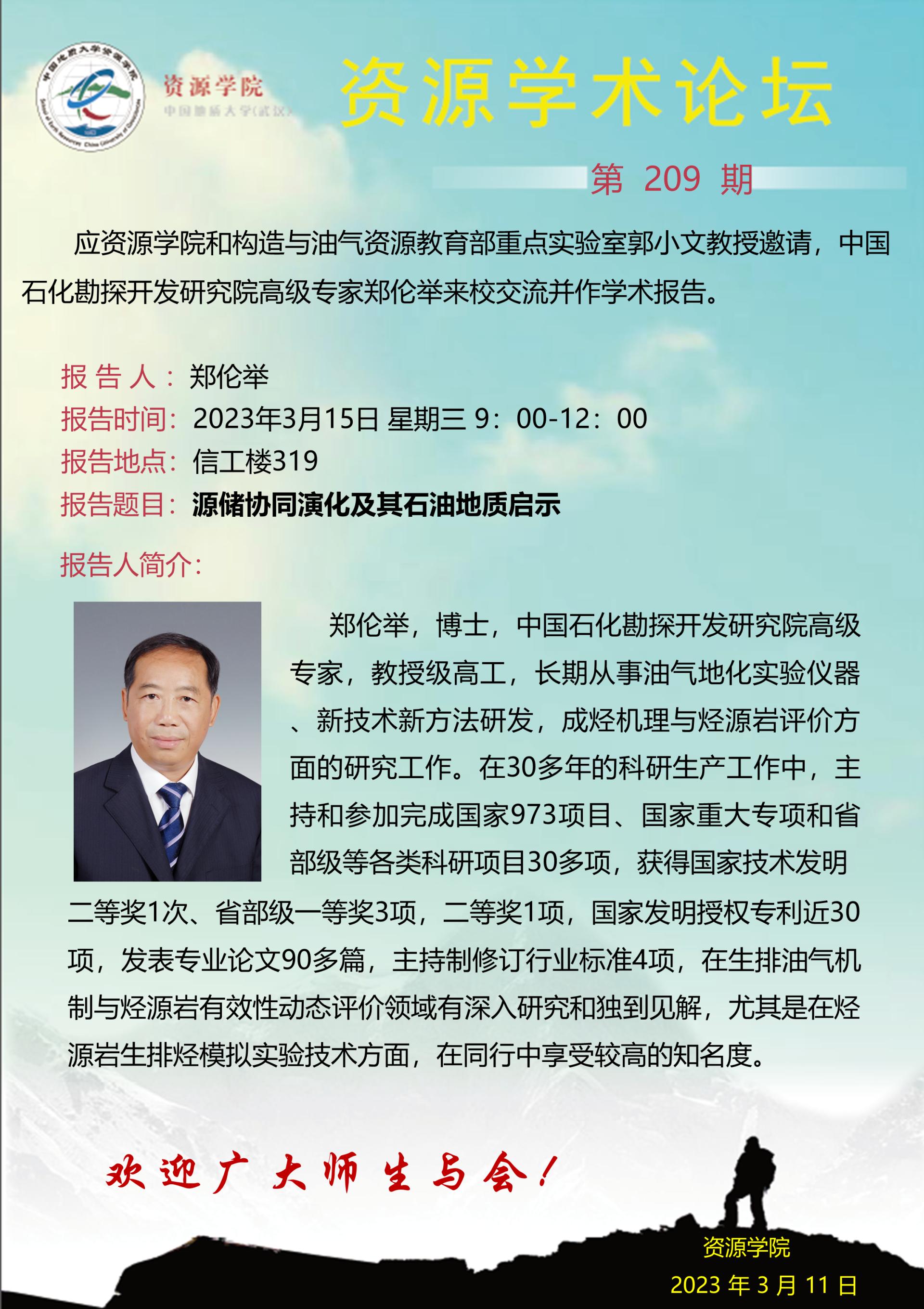 【3月15日】第209期资源学术论坛:郑伦举学术报告