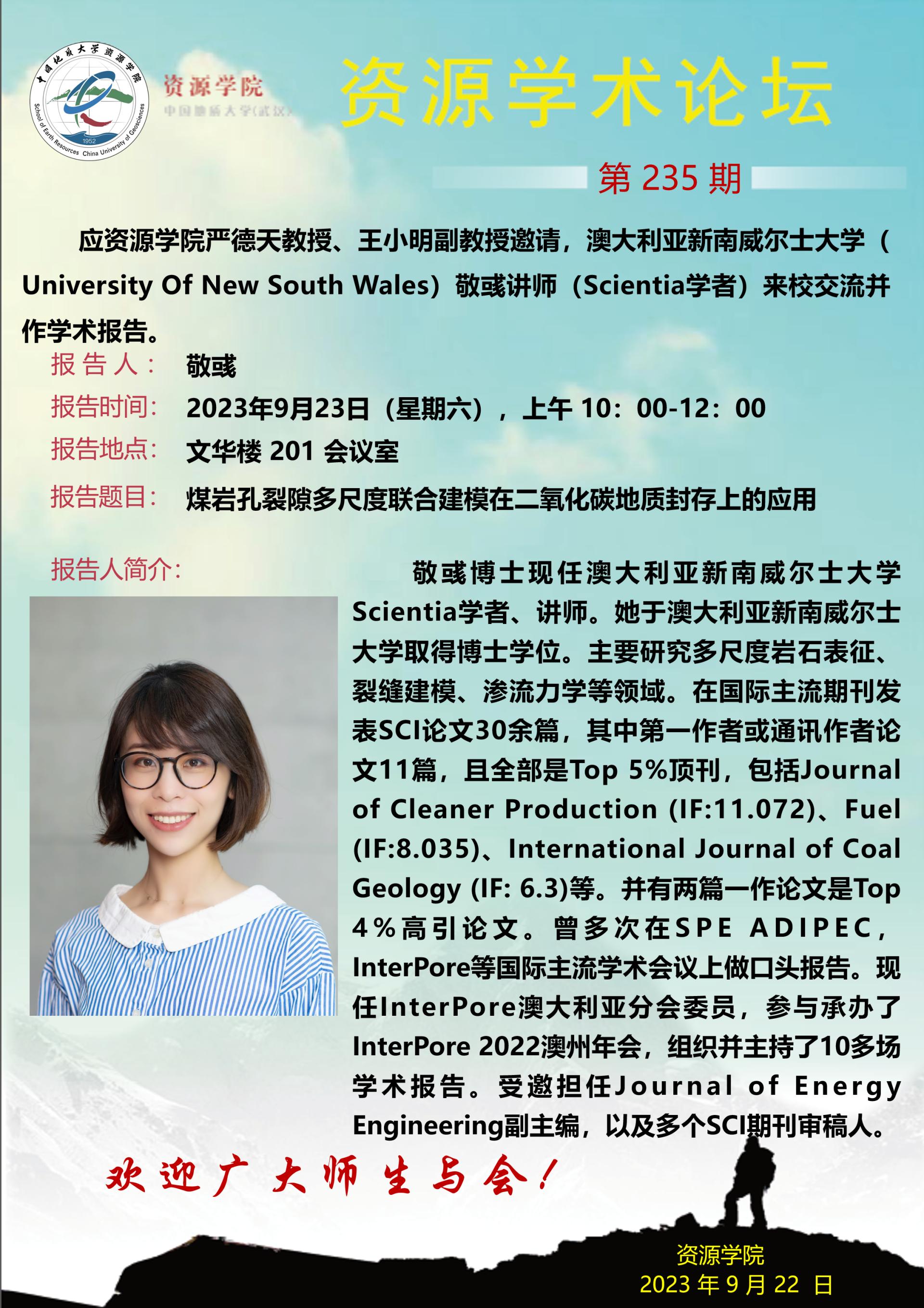 【9月23日】第235期资源学术论坛:敬彧学术报告