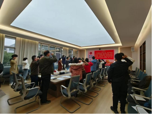 全体参会党员重温入党誓词,白文浩同志领学《中国共产党章程》党的组织制度中“党的民主集中制的基本原则”相关内容。吕帅锋同志领学了习近平总书记在中共中央政治局第九次集体学习时的重要讲话精神、刚颁布的《中华人民共和国爱国主义教育法》、习近平总书记在2023年世界互联网大会乌镇峰会开幕式上发表的重要讲话精神、习近平总书记关于生态文明建设的重要文章、学校《关于进一步加强和改进党支部建设的实施办法》以及“以案示警、以案释纪、以案促改”等六方面内容。