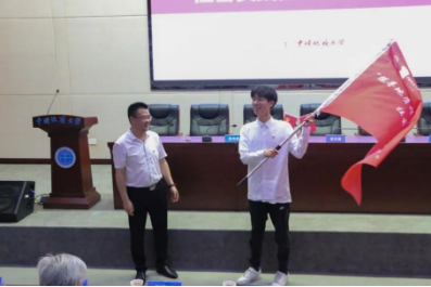 党委学生工作部邬海峰部长为“探寻地质精神 感触七秩荣光”学习之路社会实践团授旗