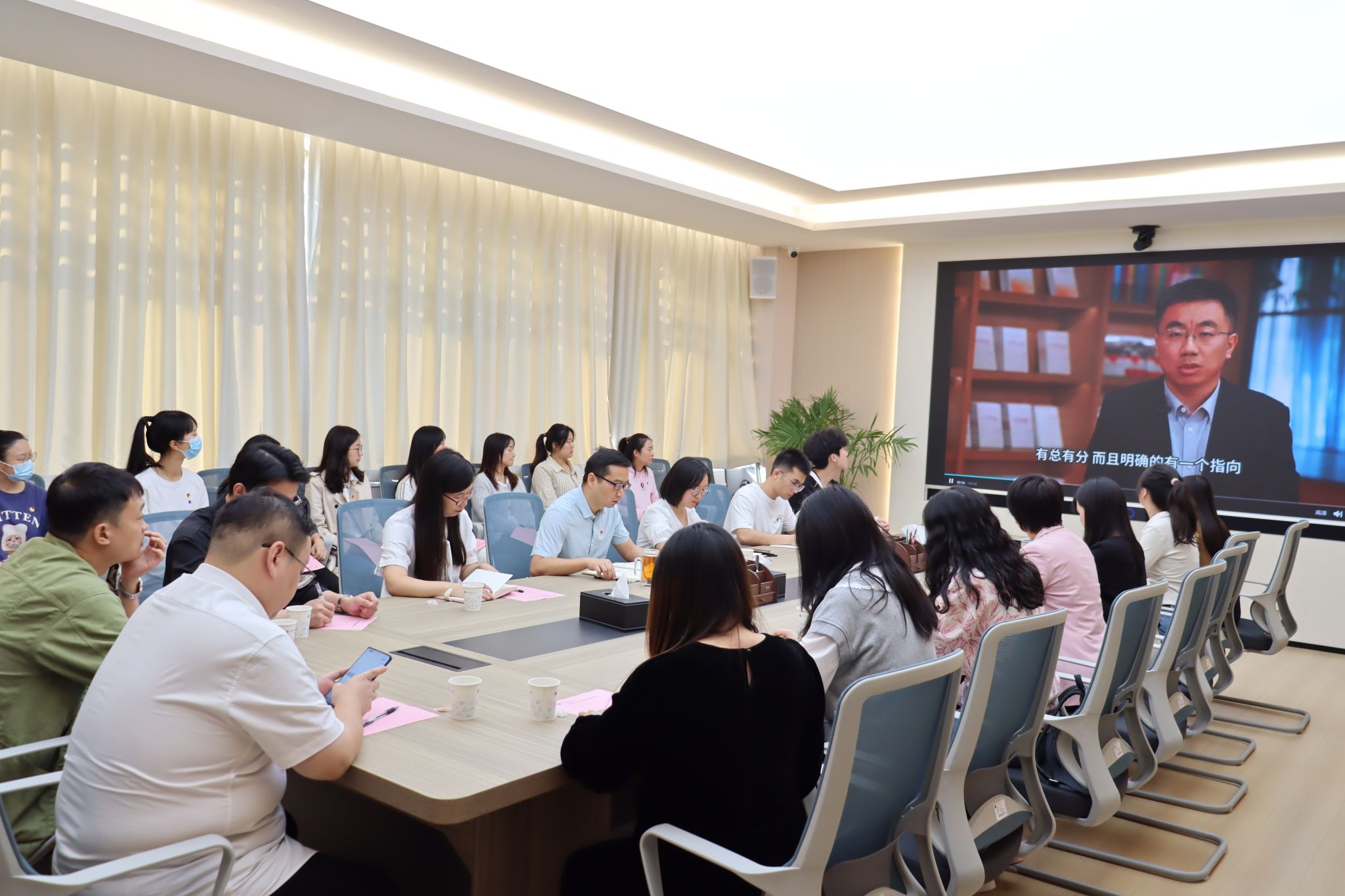 与会人员集中观看了《党校微讲堂》视频,深入学习习近平文化思想。与会人员一致表示,要将深入学习贯彻习近平文化思想同落实立德树人根本任务结合起来,教育引导团员和青年们做社会主义核心价值观的坚定信仰者、积极传播者、模范践行者,培育更多堪当民族复兴重任的时代新人,为建设教育强国、科技强国、人才强国、文化强国贡献共青团和青年力量。