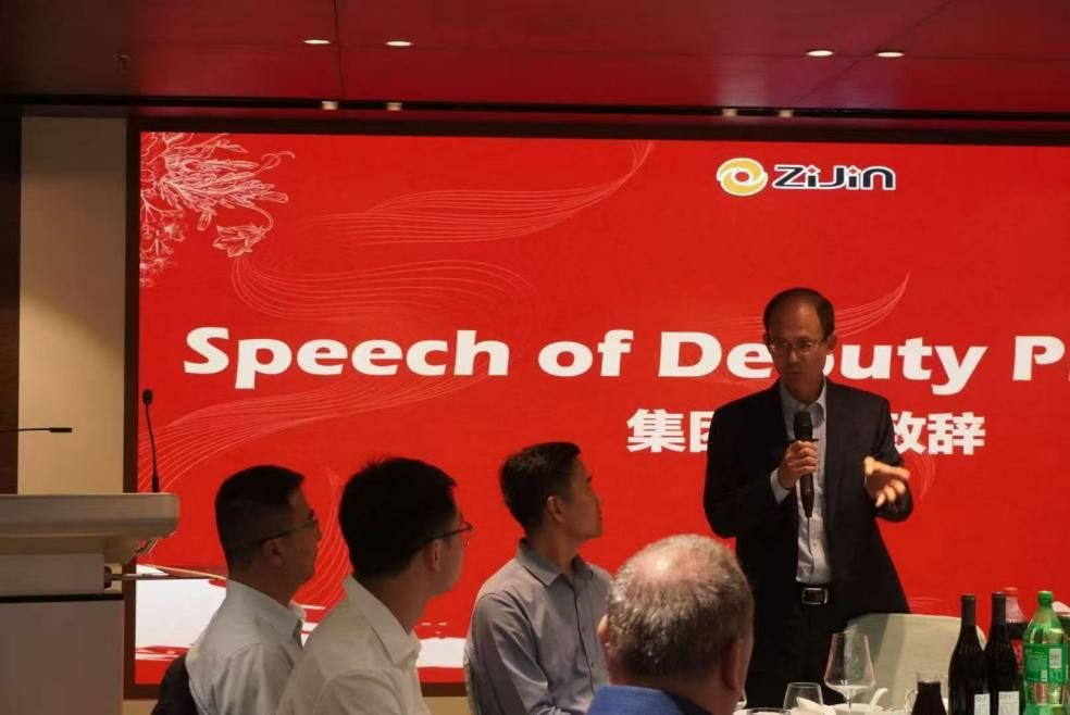 在紫金矿业第三期Zijin Deep Dive 结业仪式暨地大紫金班欢迎晚宴上,一场跨越国界的文化交流徐徐展开。紫金矿业集团副总裁沈绍阳、资源学院副院长李占轲在致辞中都表达了“紫金班”2.0版为学生搭建了从课堂到矿山、从理论到实践的桥梁,希望校企在产教融合、人才培养等领域均取得了丰硕成果,为紫金矿业打造“绿色高技术超一流国际矿业集团”贡献力量!