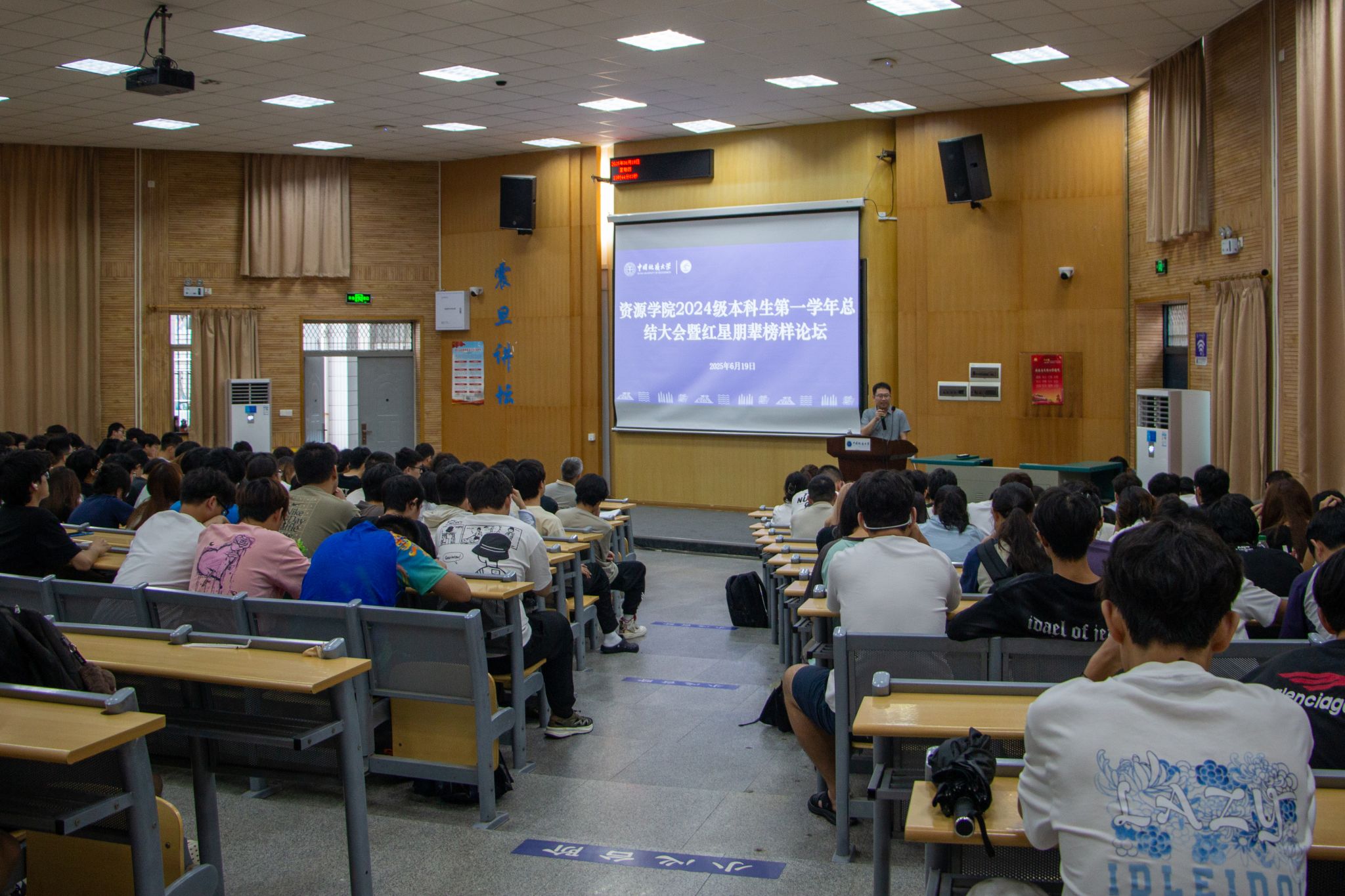 (通讯员 裴秀璟 摄影 陆佳玉)6月19日上午,williamhill英国在南望山校区西区教三楼109会议室举行2024级本科生第一学年总结大会暨红星朋辈榜样论坛。教师代表杨香华、董田、王维,2024级本科生辅导员刘睿,兼职辅导员鲍涵、裴秀璟,“红星讲师团”成员以及全体2024级本科生参加大会。刘睿主持会议。