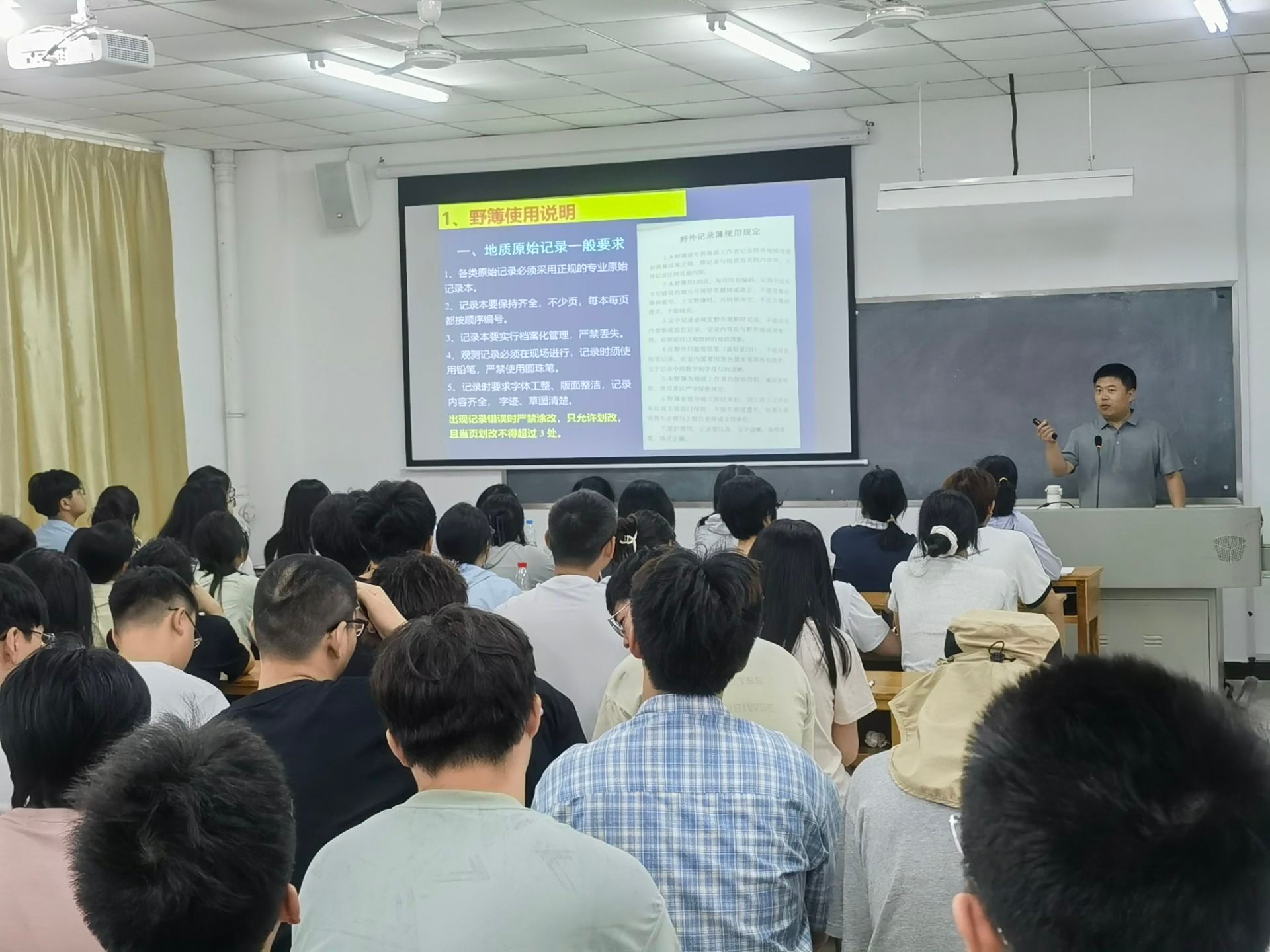 赵志新讲授“地质路线野簿记录格式”。