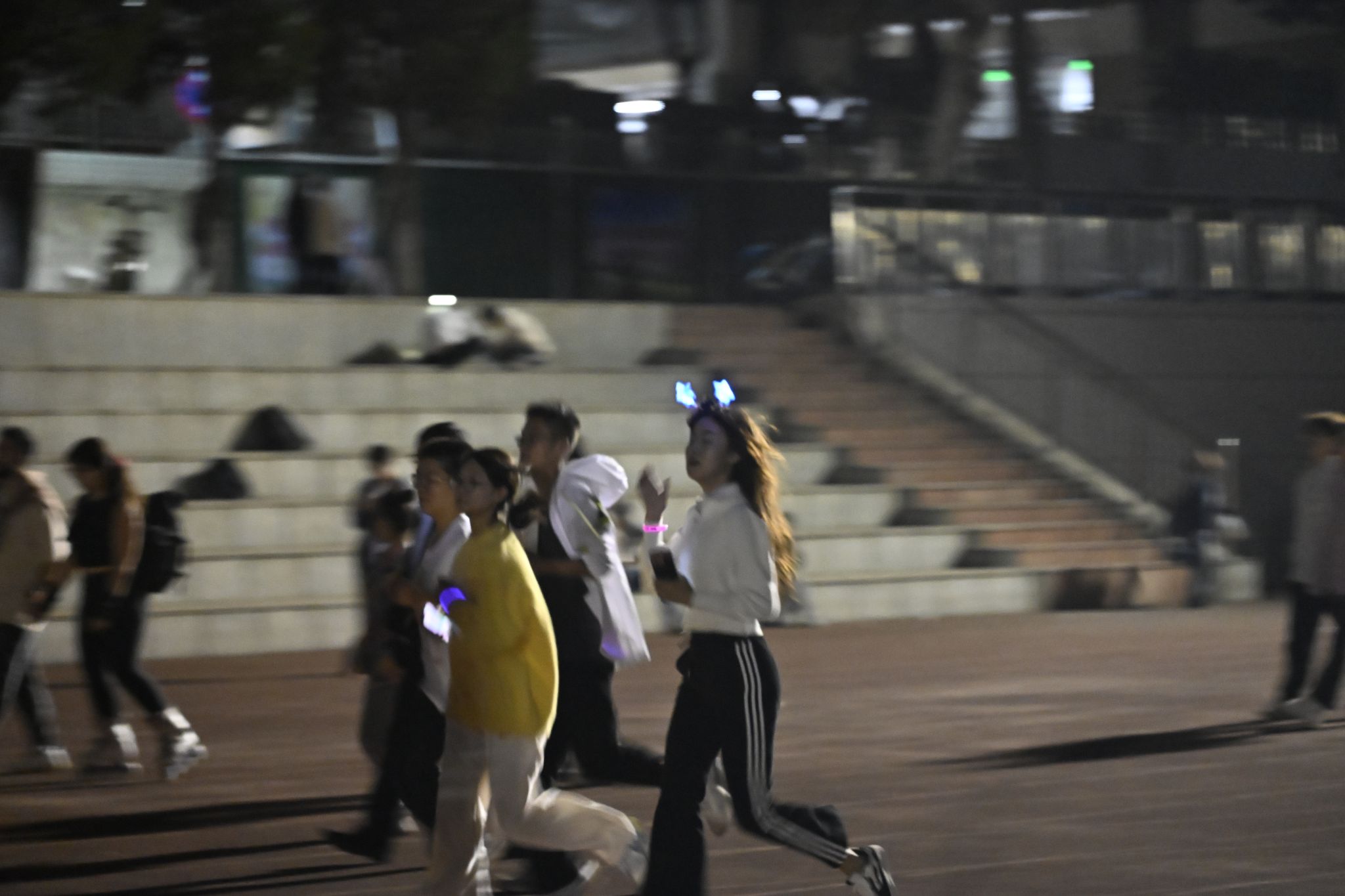 19:00,随着主持人的一声令下,荧光夜跑正式启航。操场上,一条条荧光手环在夜色中闪烁,犹如点点繁星,照亮了青春的跑道。大家你追我赶,互相鼓励,共同完成了夜跑挑战。