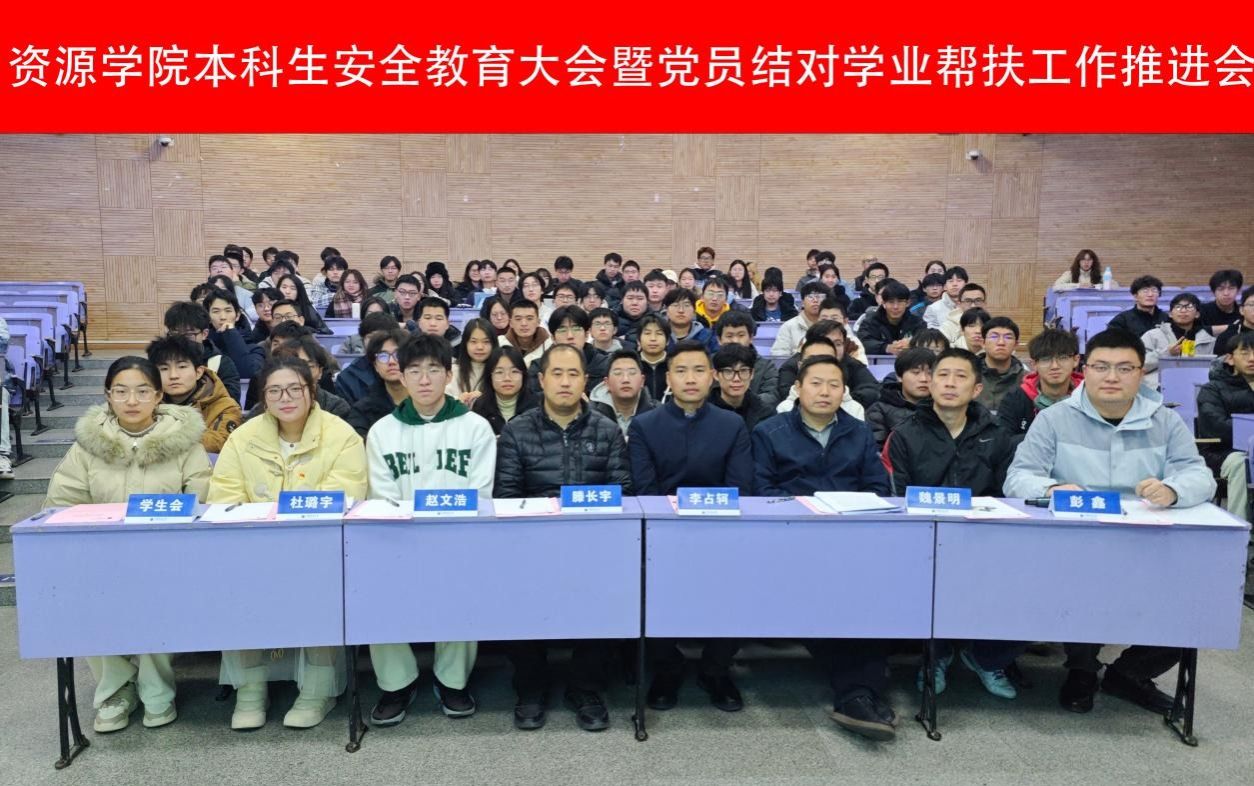 副院长李占轲讲话。他强调安全是重中之重,需同学们牢固树立安全防范意识,做自己安全的“第一责任人”。他指出党员结对学业帮扶是学院“严在地大 学在资源”学风建设品牌的重要活动,不仅可以强化党员的责任担当和先锋模范作用,还能促进同学间的互助学习和成长,希望结对同学紧密联系,用好资源,勤学多练,营造互帮互助、共同进步的良好学风。