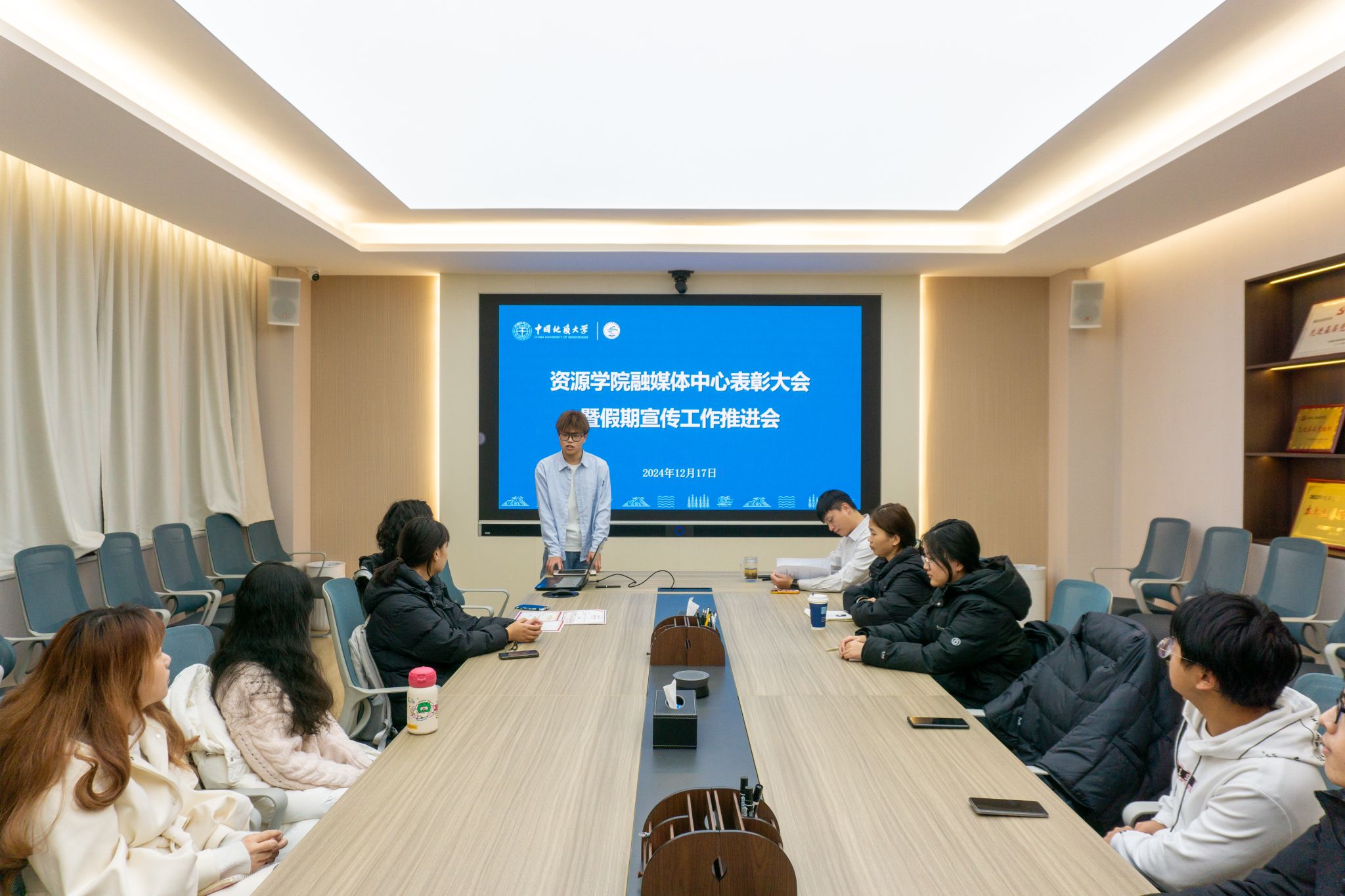 刘睿交流发言。他对融媒体中心在2024年在宣传工作上取得的成绩表示热烈的祝贺,为融媒体中心成员取得的成长点赞。他谈到,融媒体中心在过去的一年中,聚焦学院事业发展、同学成长成才有高度、有温度、有力度推进宣传工作,推动了学院宣传工作取得了务实进展,切实当好了学院事业发展的宣传员,有力提振了师生干事创业的热情和激情。他谈到,新的一年,融媒体中心成员要从实现个人成长、涵养本源热爱、履行自身责任的角度来推动宣传工作取得新成绩,和工作共成长,成为时代大事的“关注者”、当好学院事业发展的“宣传员”、做好服务师生的“服务员”。