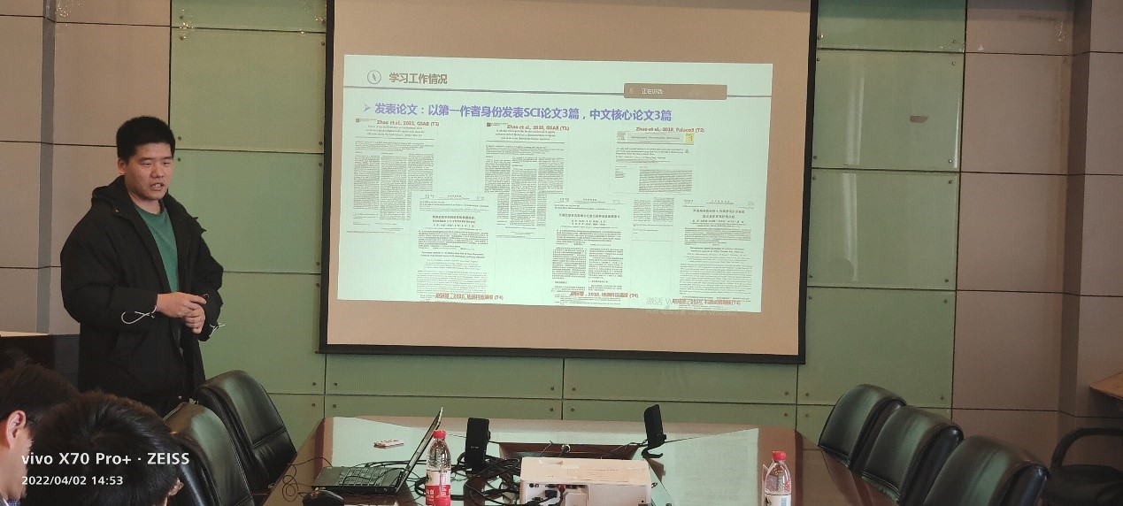 此次答辩会共有7名研究生候选人和2名本科生候选人,答辩采用研究生3分钟PPT展示+3分钟评委提问,本科生5分钟PPT展示+3分钟评委提问的形式,评委综合现场答辩情况与个人申报材料进行打分,推荐一名研究生与一名本科生参与校级评优。