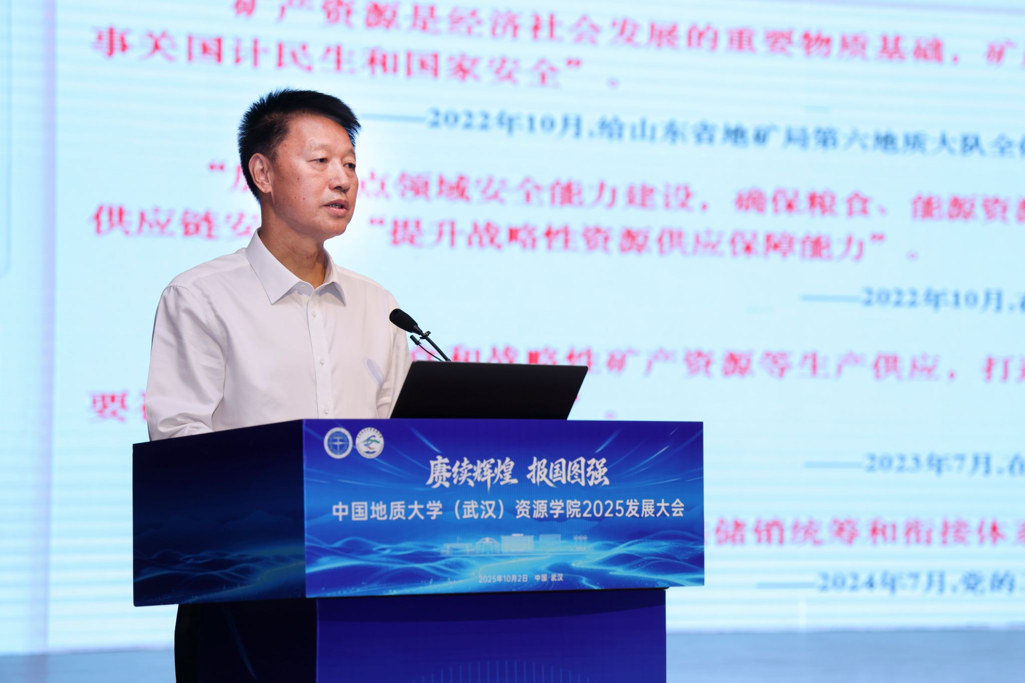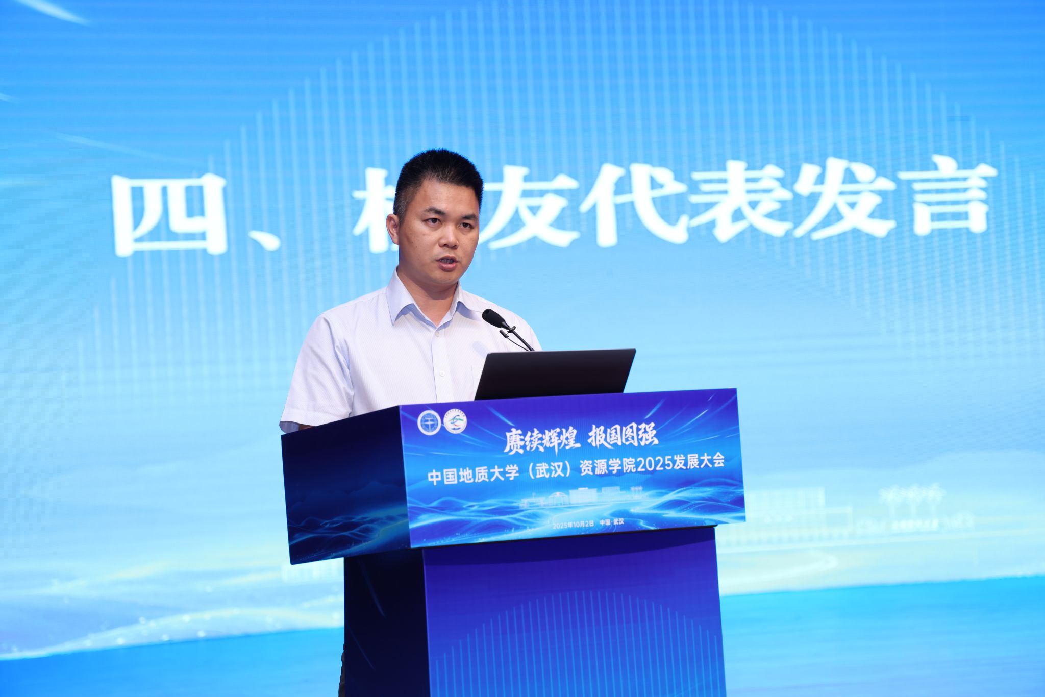 汪再奇在主持时强调,学院要以2025发展大会为新起点,锐意进取,奋发有为,加快建设资源能源领域世界一流研究型学院,为推进教育强国建设地大实践做出新的更大贡献。