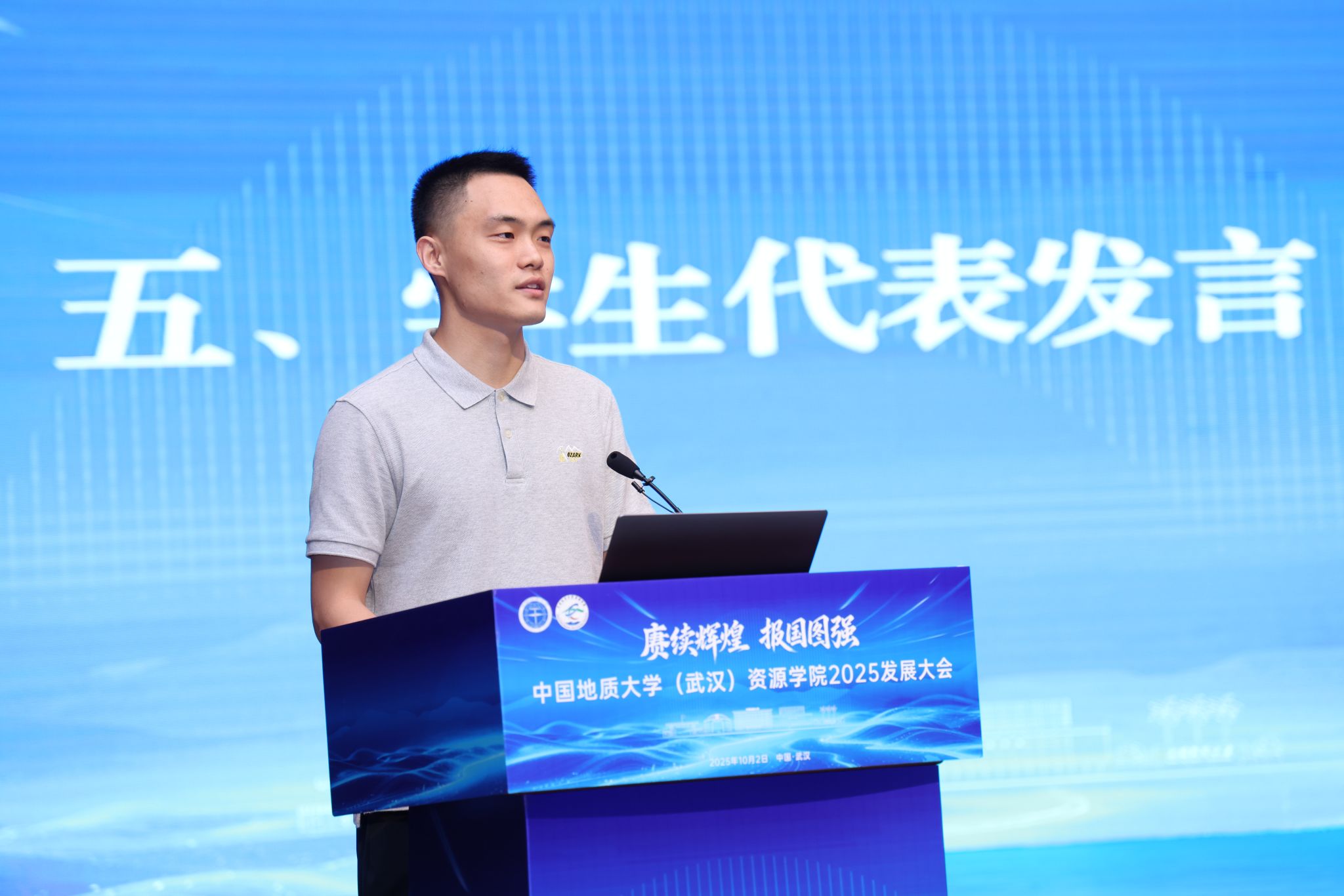 学生代表、williamhill英国2024级博士研究生代表张启扬发言。他结合自身科研实践经历分析了成长体悟,他立志用专业知识服务能源资源安全保障,展现资源人的担当与使命,让青春之花在祖国最需要的地方绽放光彩。