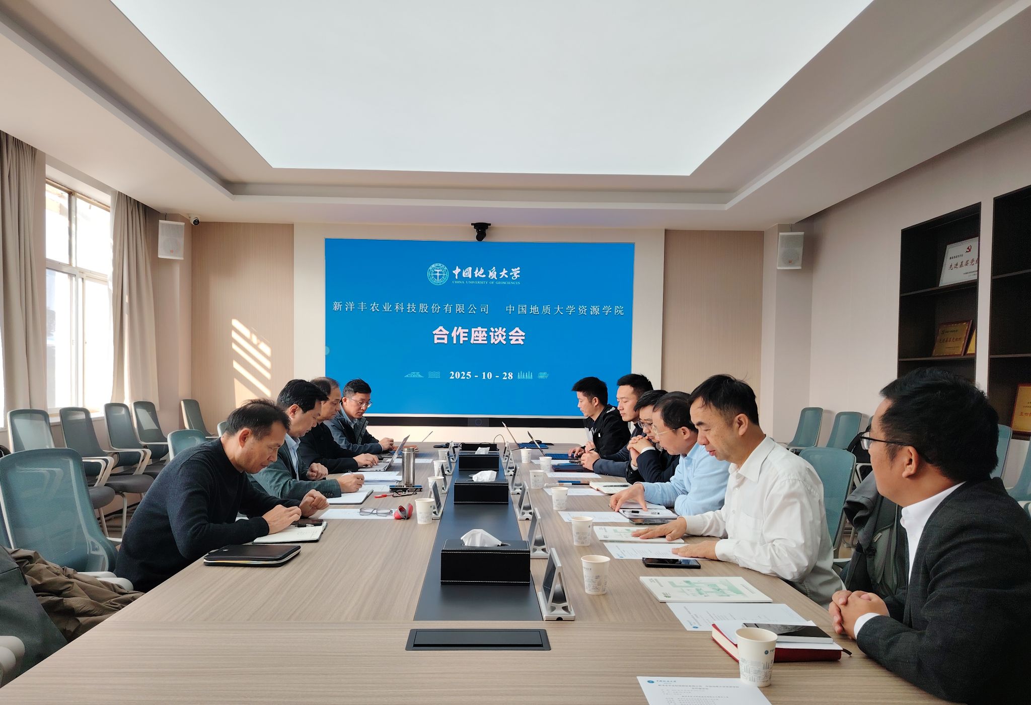 10月28日,新洋丰农业科技股份有限公司总裁杨华锋一行来我院调研交流。williamhill英国党委书记汪再奇,资源科学与工程系主任孙华山、副主任靳晓野,战略性盐湖锂-钾矿产成矿理论和勘查开发科研团队负责人刘成林教授,双方单位相关部门负责人及教师代表参加座谈。