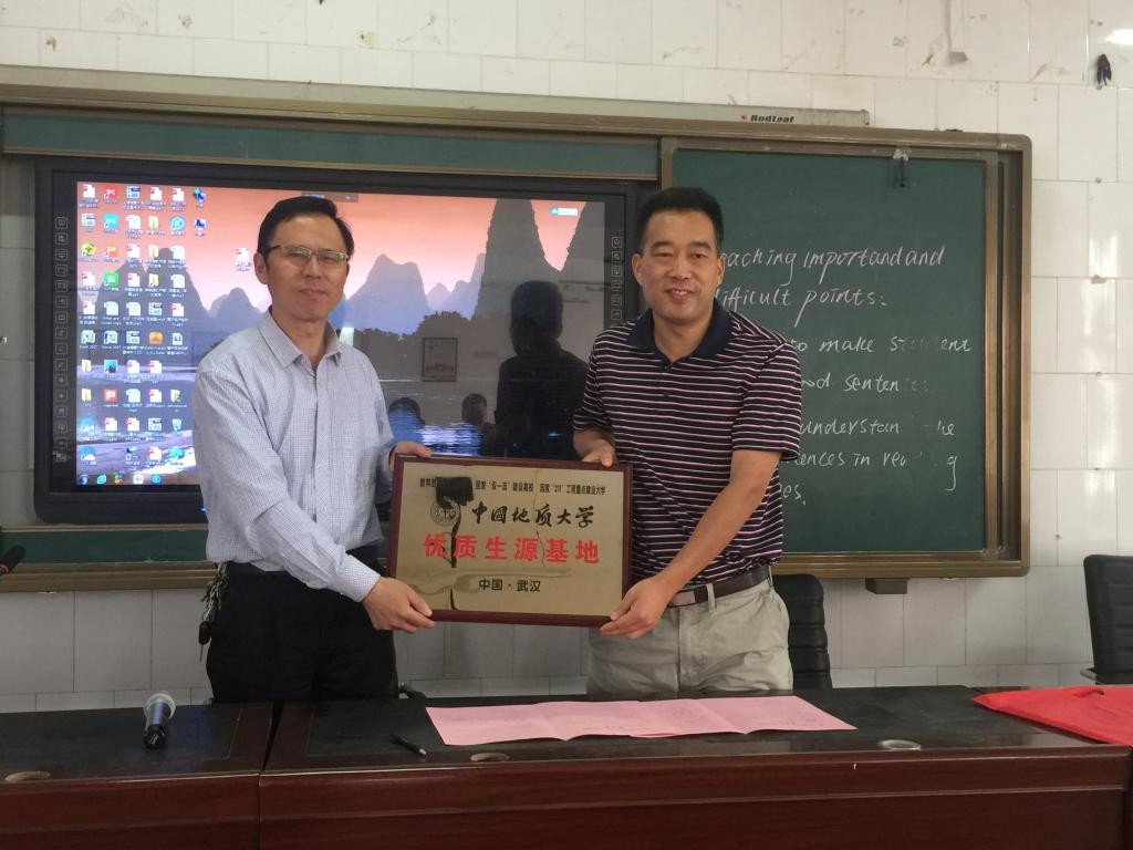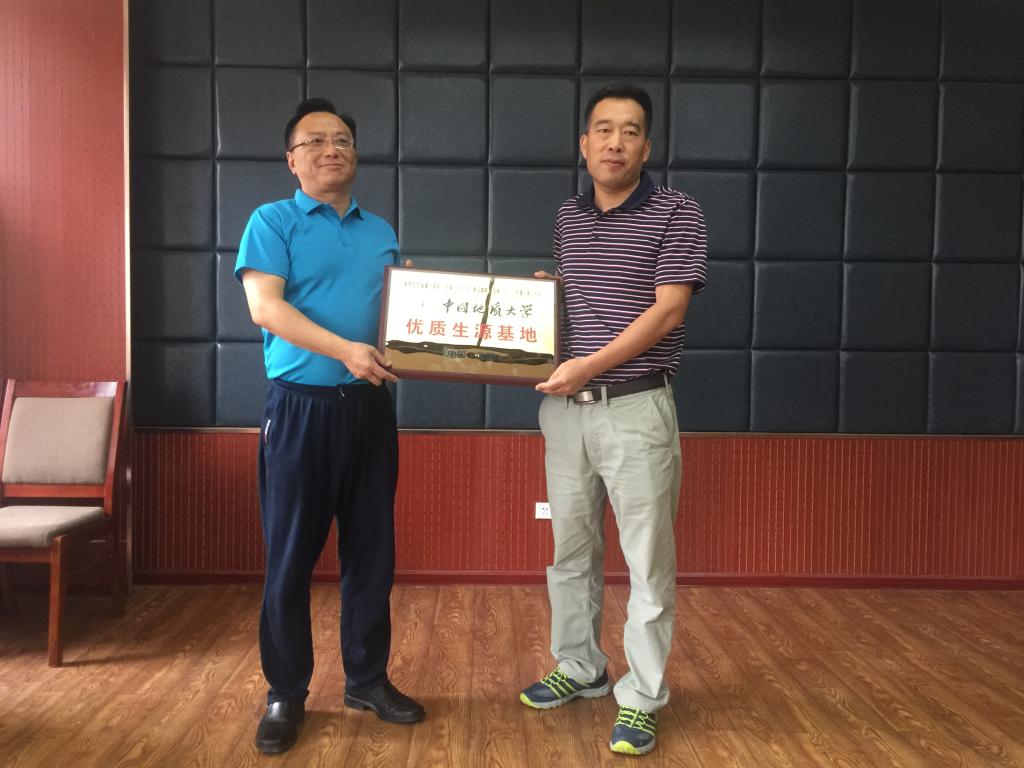 5月24日上午10时许,朱红涛教授一行走进河南省尉氏三中(南校区),受到了焦凤民校长等学校领导的热情接待。在座谈会上,通过播放《与地大·共芳华》的我校宣传视频,让尉氏三中(南校区)与会人员直观的了解到我校基本情况。然后朱红涛详细介绍了我校教育教学、学科建设、产学研平台、人才培养等方面的优势,并与尉氏三中(南校区)学校领导及年级主任就学生关切的问题进行了详细的交流。随后,双方签署了《联合共建优质生源基地协议书》,朱红涛代表学校向该授予优质生源基地铜牌。