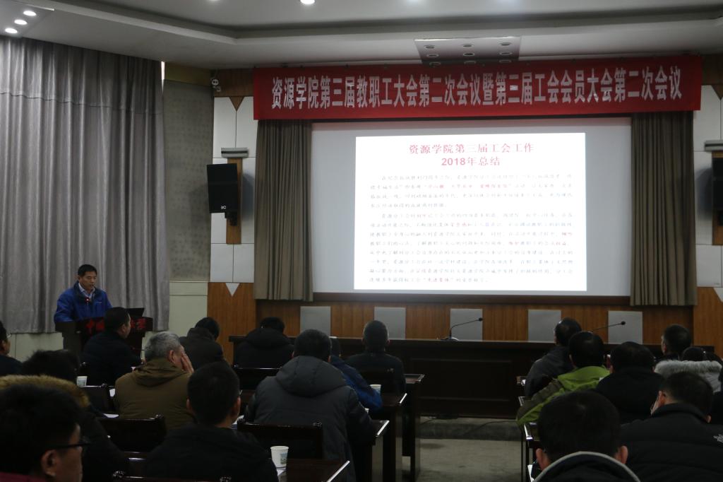 院分工会主席陈振林向大会作学院分工会2018年度工作报告,报告全年院工会组织的各项活动和成绩。