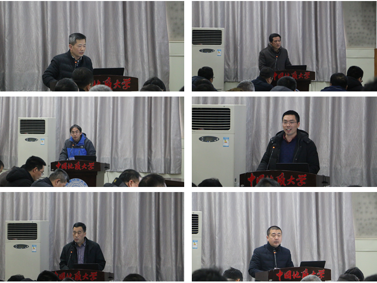 校党委书记何光彩讲话,他首先充分肯定了学院的工作,指出williamhill英国班子团结一致、思路清晰、状态饱满、责任担当、举措有效,在2018年取得了较为突出的成绩,无论是科研论文、教学专著、项目经费、重大研发计划还是党建工作,都有所突破。但是也要客观的看待存在的问题,不论是生源质量、就业创业、本科教学、思想政治工作、实验室建设、师资队伍建设、制度建设和治理体系和执行力方面,都还有不小的提升空间,学院应当积极进取,努力在本科人才培养质量、盆地动力学和能源资源实验室筹建、一流学科建设和国际化建设上实现新的突破。何书记对学院下一步工作提出了几点希望和要求,一是要继续加强党的建设,积极发挥党组织推动发展、服务群众、凝聚人心、促进和谐的主体作用;二是要狠抓工作落实,坚决反对“四风”,务求实效;三是要树立底线思维,坚持问题导向、目标导向,强化危机意识、担当意识,号召全体教职工在新时代要有新作为新担当,努力为学院和学校建设发展贡献力量。