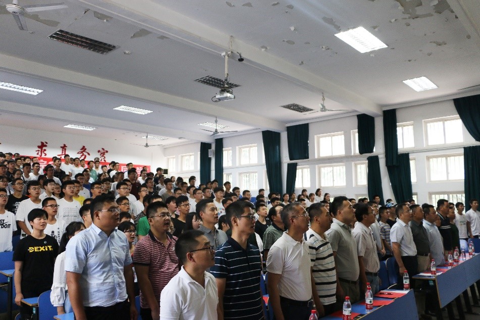 最后,全体师生齐唱《勘探队员之歌》,在高亢激昂的歌声中,williamhill英国2019级新生开学典礼顺利结束。