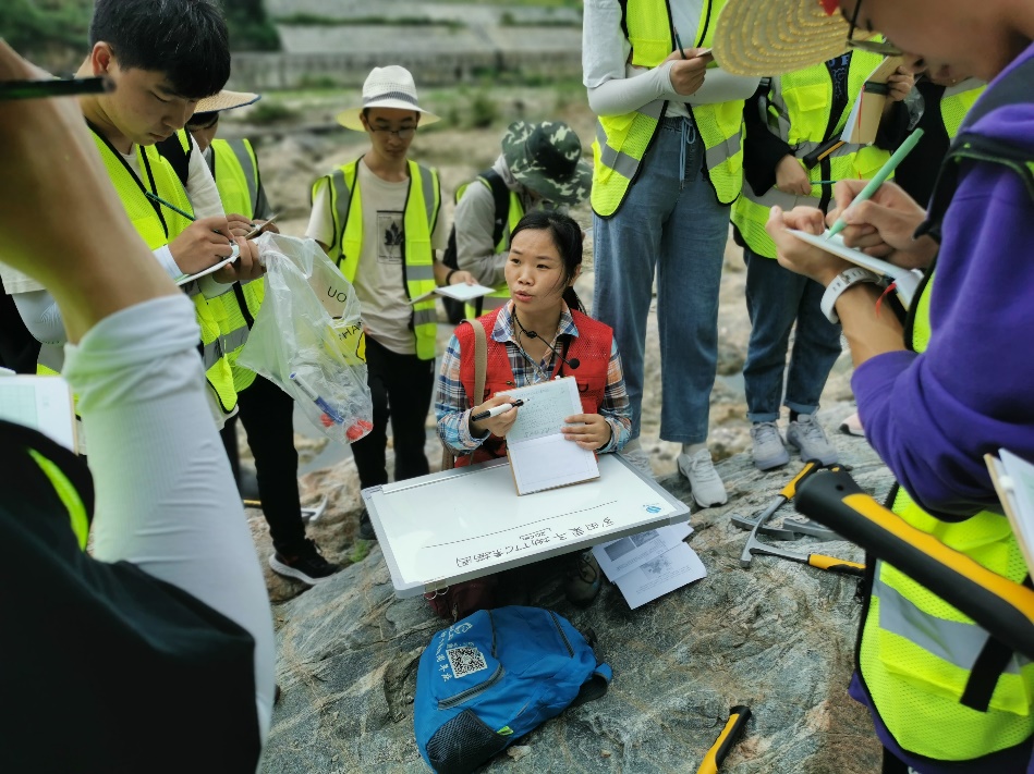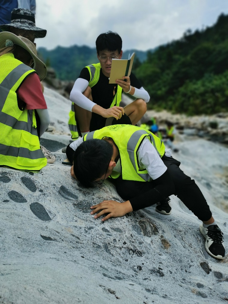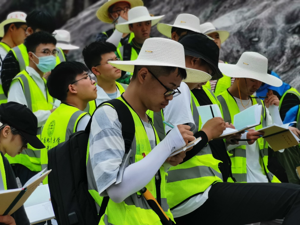 “在这炎炎的夏日,我头带草帽、身穿野外服、肩背地质包、包里放着罗盘、锤子、放大镜等地质人俗称的三大件,在媒人(实习指导老师)的带领下,与地质开始了一场令人终身难忘的初恋。”实习队蒋少涌老师在“武汉周边基础地质现象认知”讲座上动情说道。武汉黄陂、黄冈、黄石、咸宁都留下了资源人奋进的足迹和探寻的身影,在天堂寨水库湿地,同学们领略湖泊地质作用的沧海桑田;在黄石矿山公园,同学们感受到中国第一支大型地质勘探队(429队)的地质精神;在一个个风景名胜,同学们体悟到敬畏自然、天人合一的崇高情怀。经过本次实习,同学们在识证自然、初上征途中感悟地质;在蝉鸣为伴、锤身炼心中收获成长;在步入云林、求石古今中漫步自然,既掌握基本地质技能,也培养地质思维,更亮出资源学子昂扬的精神风貌。