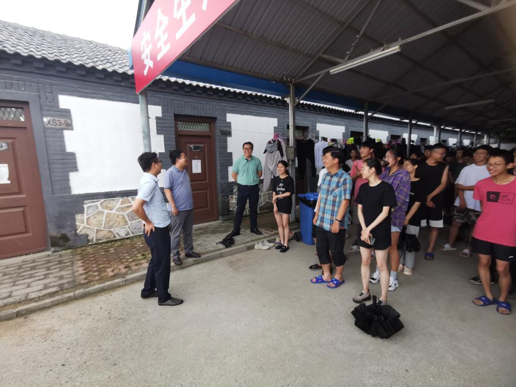 7月27日下午,高复阳一行在实习基地集中看望慰问实习教师,到教室、宿舍走访学生,并与带队教师举行座谈会。座谈会上,高复阳详细询问老师们教学、生活总体情况,详细了解学生实习的开展进度,感谢老师们的辛勤付出。他指出,野外实践教学是学院教育教学的重要环节,也是学校人才培养的特色和优势,扎实做好野外实践教学对于提高学生培养质量至关重要。他强调,老师们要坚持立德树人思想引领,认真开展好教学活动,保证良好的教学效果;同时,野外实践教学也是落实三全育人、开展课程思政工作的良好契机,希望老师们齐心协力抓好学生的教育引导和综合培养工作。他强调,当前新冠肺炎疫情零星散发,防控形势仍然严峻;时下进入盛夏雨季汛期,全国多地遭遇重大洪水灾害,请全体老师务必做好疫情防控和野外实习安全工作;同时,注意做好交通安全、饮食安全、防电信诈骗等工作,确保师生人身和财产安全,确保本次实习顺利、圆满。