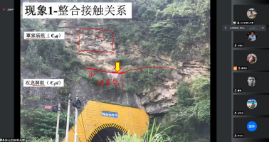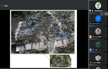 学习资料包是线上实习的“金钥匙”。教学团队精心制作了涵盖了整个实习周期的野外地质现象信息的线路资料包。带班老师在照片中标注不同地层分界线等信息,让学生细致对比剖面信息,利用课堂互动展开讨论与专业知识延伸。