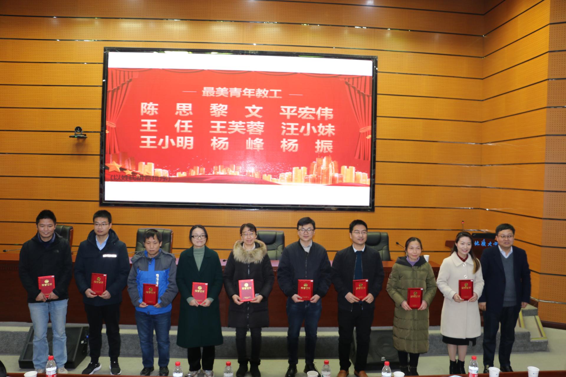 大会举行表彰仪式。学院对一年来在学科建设、人才培养、科学研究、社会服务等方面表现突出的个人给予了表彰奖励。其中,授予李建威、潘焕泉、赵葵东、朱红涛4位老师学院2021年度“突出贡献奖”,授予陈思、平宏伟、王任、王芙蓉、汪小妹、王小明、杨峰、杨振、黎文9位老师“最美资源青年教工”荣誉称号。