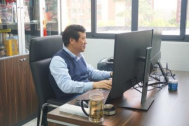 科研办公环境整洁明亮,生动温馨,入门便是宽敞的大厅,抬头就是清新喜人的绿植,开窗即见生机盎然的自然。