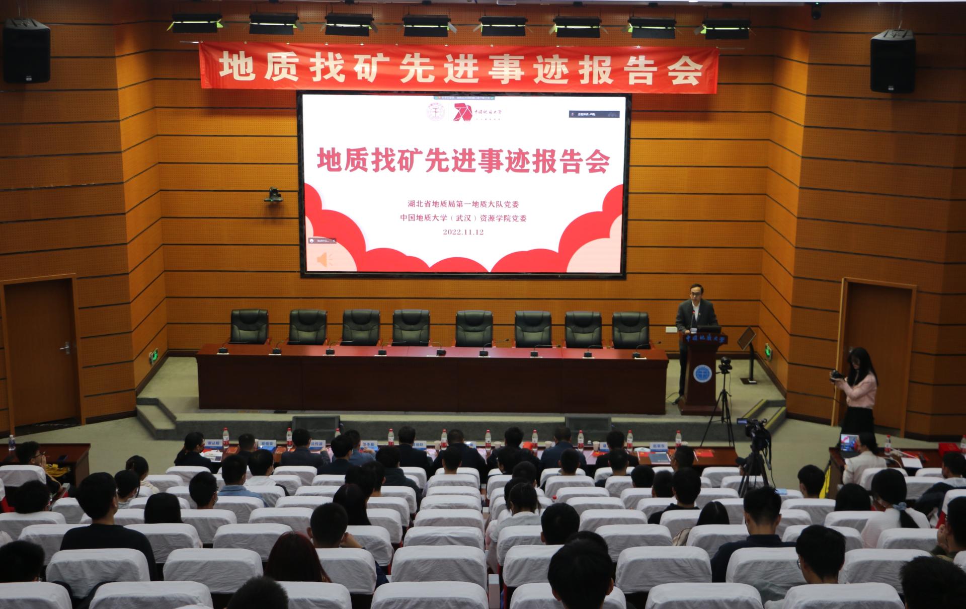 为深入学习贯彻习近平总书记关于能源资源工作的重要论述和重要回信精神,大力弘扬地质工作者的优良传统,激励师生坚定资源能源报国理想信念,11月12日,williamhill英国党委联合湖北省地质局第一地质大队党委开展理论学习,举办地质找矿先进事迹报告会,组建资源能源宣讲团。全国地质勘查功勋单位湖北省地质局第一地质大队党委书记、队长、我院资源勘查工程专业2004届本科毕业生吴昌雄作专题报告。湖北省地质局第一地质大队副队长刘冬勤、杨伟卫,副总工程师蔡恒安,我校党委常委、宣传部部长储祖旺,学院党委书记高复阳,副院长赵葵东、沈传波,党委副书记谭文伦,教育部首批“双带头人”教师党支部书记工作室负责人谢丛姣,资源科学与工程系教师、学生代表,第27期入党积极分子培训班学员线下参加报告会,全体学生党支部、学生班团委成员在线参加报告会。副院长赵葵东主持报告会。