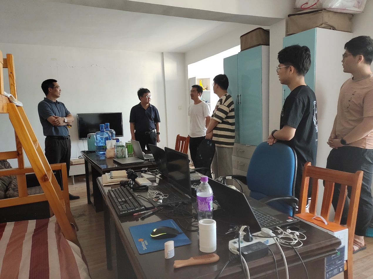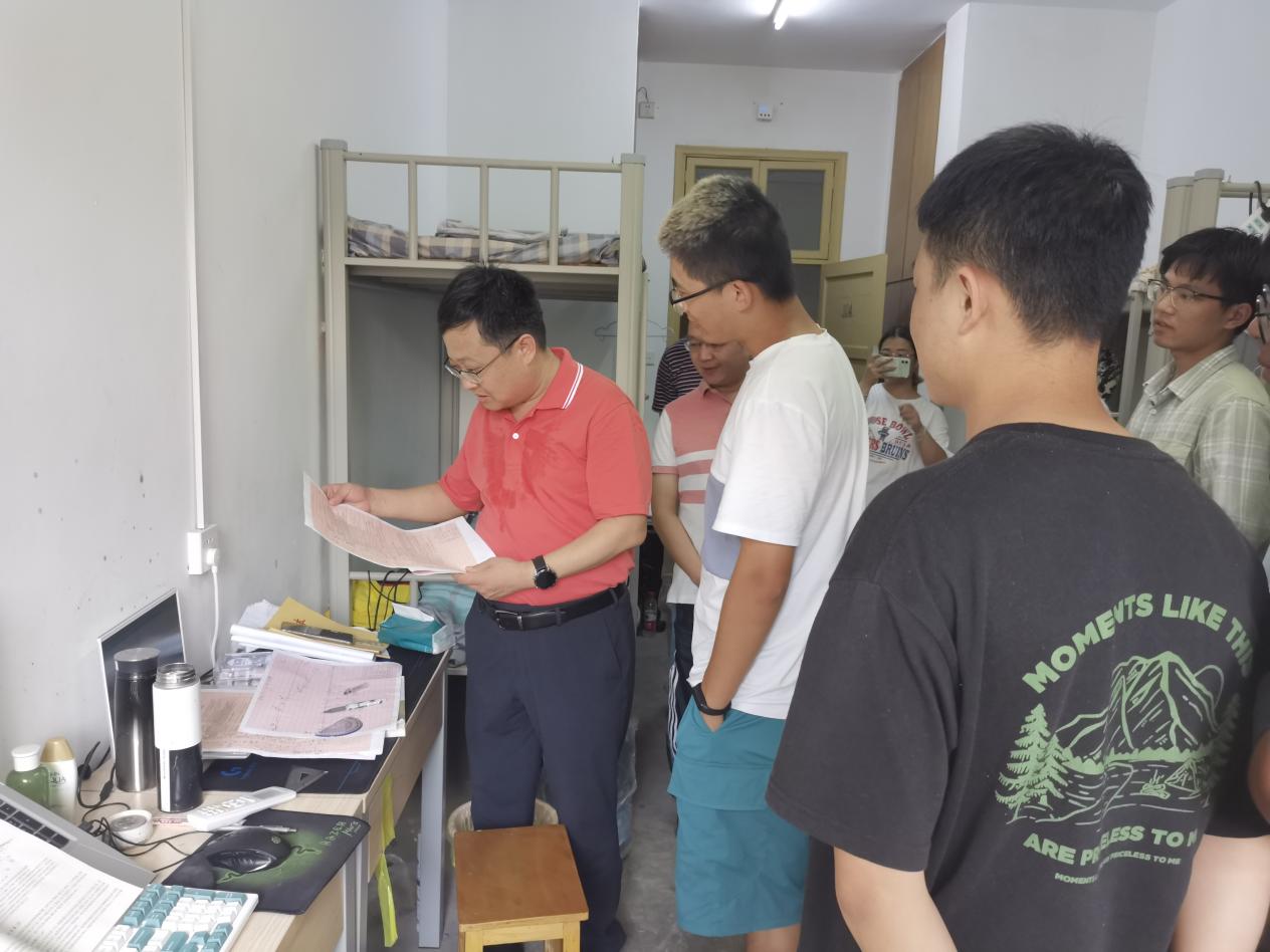 高复阳一行走访学生宿舍,与正在宿舍开展地质填图的学生进行详细交流,询问同学们实习过程中的所学所获及感受。