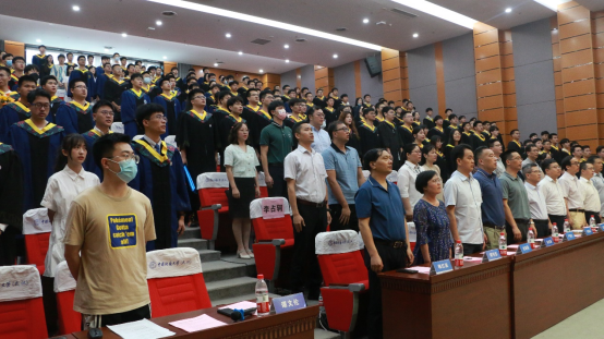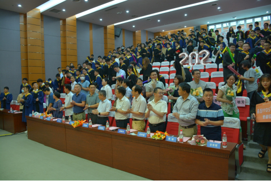 9时整,毕业典礼正式开始。学院全体院领导、各系书记和主任、毕业班班主任、教师代表、院直全体老师、在校生代表、全体2022届毕业生出席本次典礼,党委副书记谭文伦主持典礼。