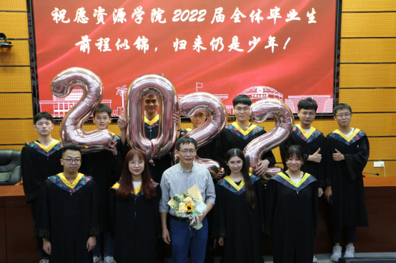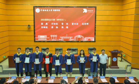 2013届校友、2022年“全国向上向善好青年”入选者欧阳永棚通过线上方式为同学们送上祝福。他深情回忆地大7年求学路,回顾了自己9年间参与朱溪世界最大钨矿床等勘查工作经历,感悟只要能坚持不懈、沉得下心、耐得住寂寞,就能够在平凡的岗位中不断实现自身价值;他谈到地质事业的发展迫切需要有理想、有本领、有担当的青年们加入,希望同学们将个人的理想追求融入党和国家宏伟蓝图中,继续发扬地矿“三光荣、四特别”精神,为保障我国矿产资源安全添砖加瓦,在奋斗中绽放青春之花。
