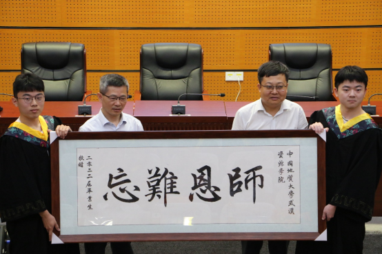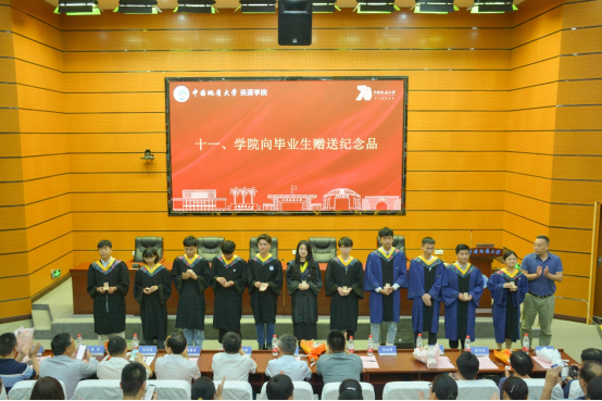 副院长朱红涛代表学院为毕业生赠送纪念品,希望大家带着学院美好真挚的祝福踏上新的征程。