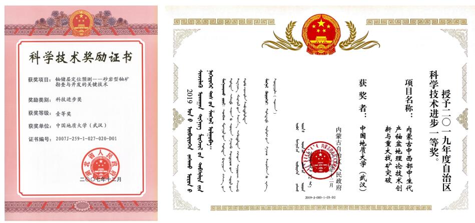 湖北省和内蒙古自治区科技进步一等奖
