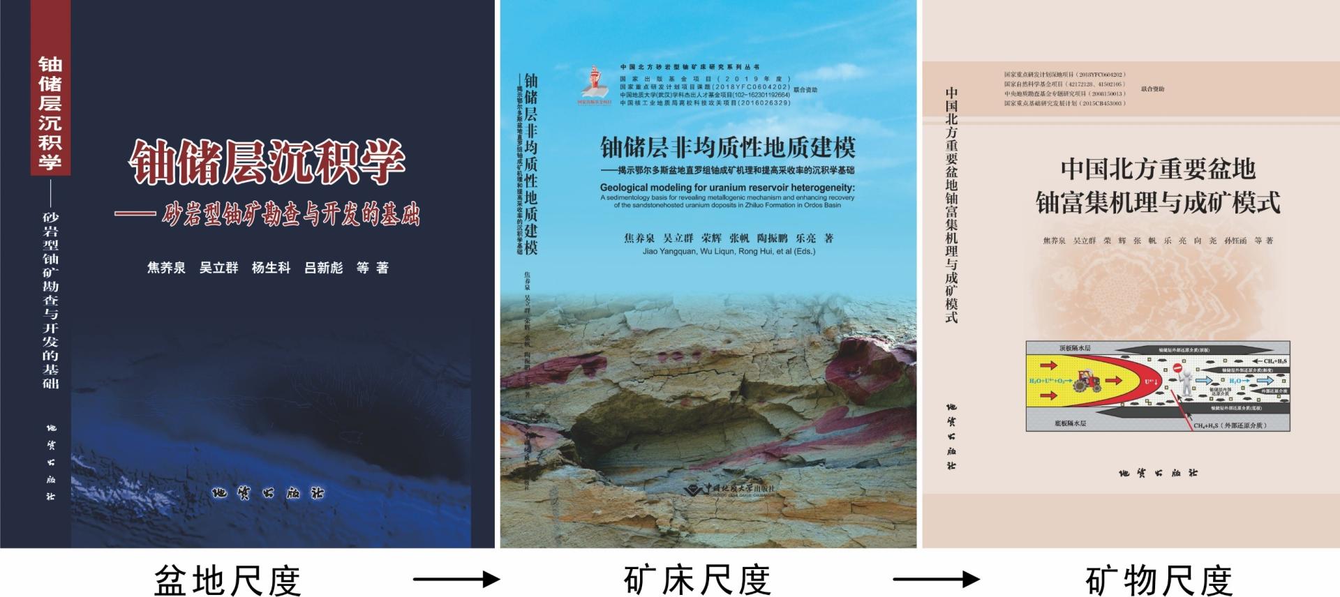 求真之路没有尽头,焦养泉教授和团队又进一步地深入到了“矿物尺度”的铀成矿作用过程研究中,在完成国家重点研发计划“深地资源勘查开采”重点专项课题基础上,于近日出版了《中国北方重要盆地铀富集机理与成矿模式》专著。该专著的问世,大大丰富了中国中新生代盆地铀成矿理论,也使“铀储层沉积学”理论技术体系得到了持续的深化发展。