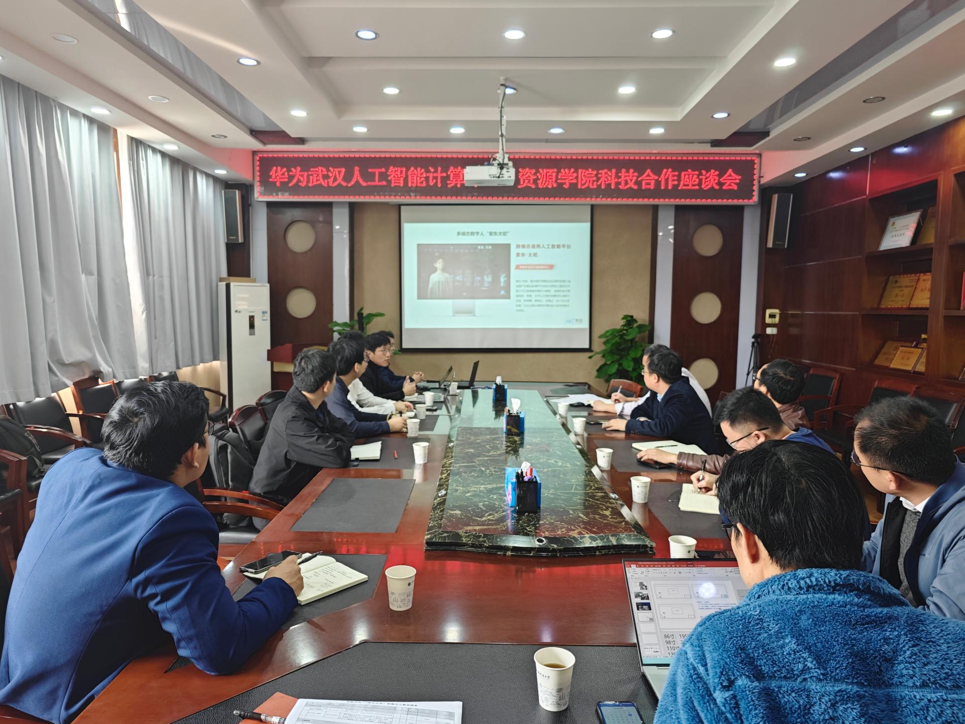 近日,华为武汉人工智能计算中心首席技术官李明举一行来学院交流合作,双方围绕人工智能技术发展、科技研发、人才培养、产学研合作等方面进行了深入交流。党委书记高复阳主持会议,副院长赵葵东、朱红涛,双方相关单位负责人参加座谈会。
