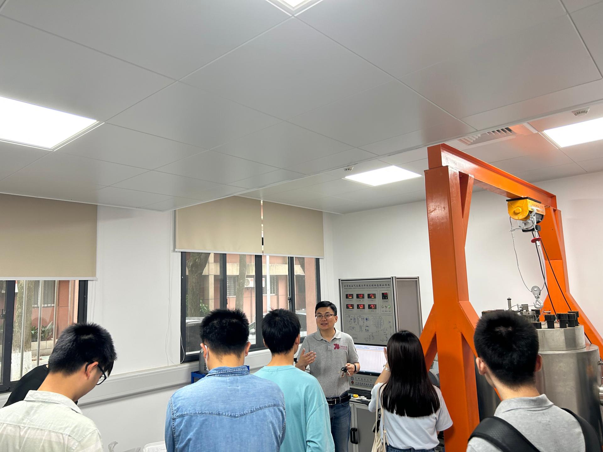 石油地质系教授杨锐带领学生前往核磁共振实验室、扫描电镜实验室参观。他向同学们介绍了实验室情况以及相关仪器的原理和使用方法,并现场演示仪器。