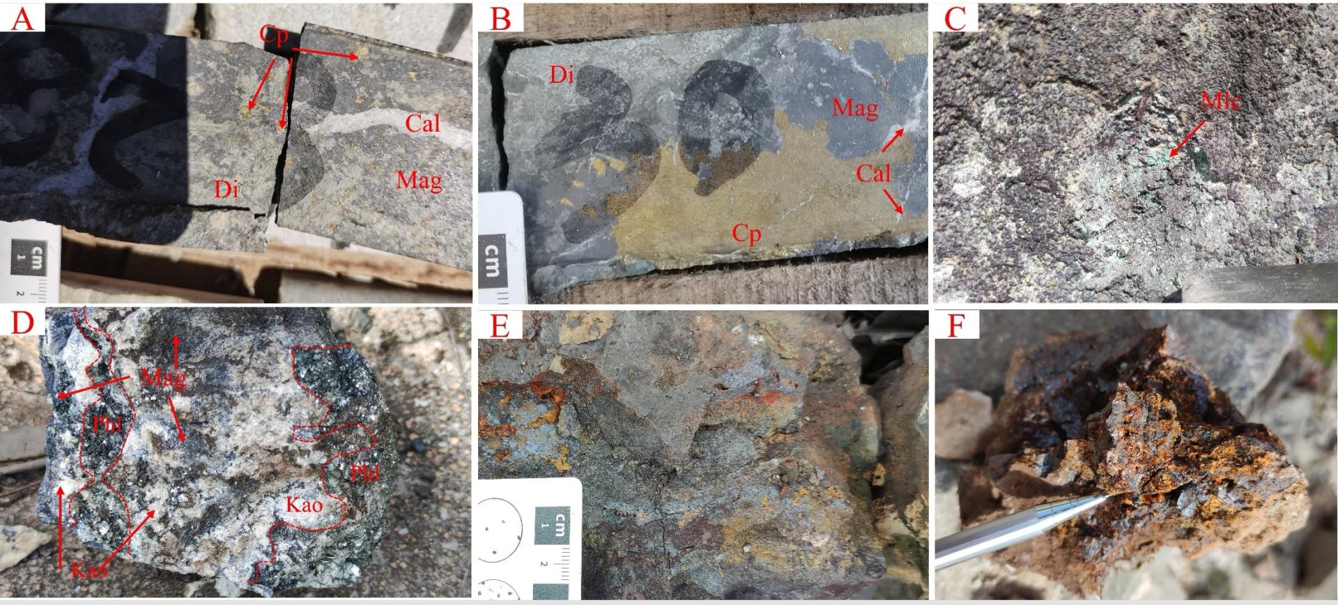 铜绿山位于湖北省鄂东南矿集区西侧,累计查明金和铜金属量分别为194吨和237万吨,占省内累计查明资源量的49%和44%,铁银储量也达到大型规模,是国内少有的铜铁金超常聚集区。7月8日至15日,谭俊老师带队,基地班傅炳臻、冯佳鑫、黄中泽、李龙鹏、黄金贵、杨翱等6名同学组成实习小组。首先学习矿山钻探工作中的钻孔编录方法,提高学生的实践能力,同时对研究区的矿化分带有一个初步地认识,在此基础上安排学习化验样品和矿床地球化学研究样品的规范采集;第二部分是参观铜绿山古铜矿遗址,了解千年矿山的采冶和现代化勘探采矿的风采,随后实地观察野外矽卡岩型接触带、野外露头、赋矿围岩和矿石特征,统计近矿岩体、地层蚀变类型和组合;第三部分是实地调研区内其他成矿类型的矿床,拓宽学生对不同类型矿床的见解。