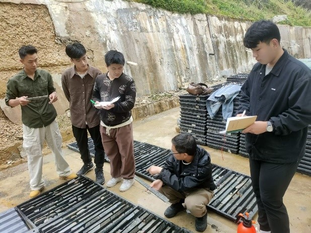 冯佳鑫:在为期3周的矿床实训中,谭俊老师带着我与同学们经历了许多课堂上涉及不到的内容,诸如岩心编录与矿床地质及周边调查等,这些经历不仅大大开拓了我的眼界,提高了我的地质能力,贴近生产的方式教学还使我对地质这一行业产生了更浓厚的兴趣,这些都是平时课堂可遇而不可及的。在谭老师丰富的地质从业经验下,我的问题都得到了专业且科学的解答,无论从见识还是知识方面,这两周的实习对我来说都是有意义的。