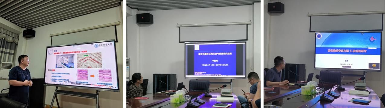 在产学研合作交流环节,石油工程系钟志教授、石油地质系平宏伟教授和王维副教授先后作题为《基于人工智能技术分辨率提升在油气勘探领域的应用与案例》、《流体包裹体及成藏研究进展》、《秭归野外考察与近海盆地源-汇体系及储层分析的思考》专题报告,与会人员针对报告内容开展充分讨论交流。