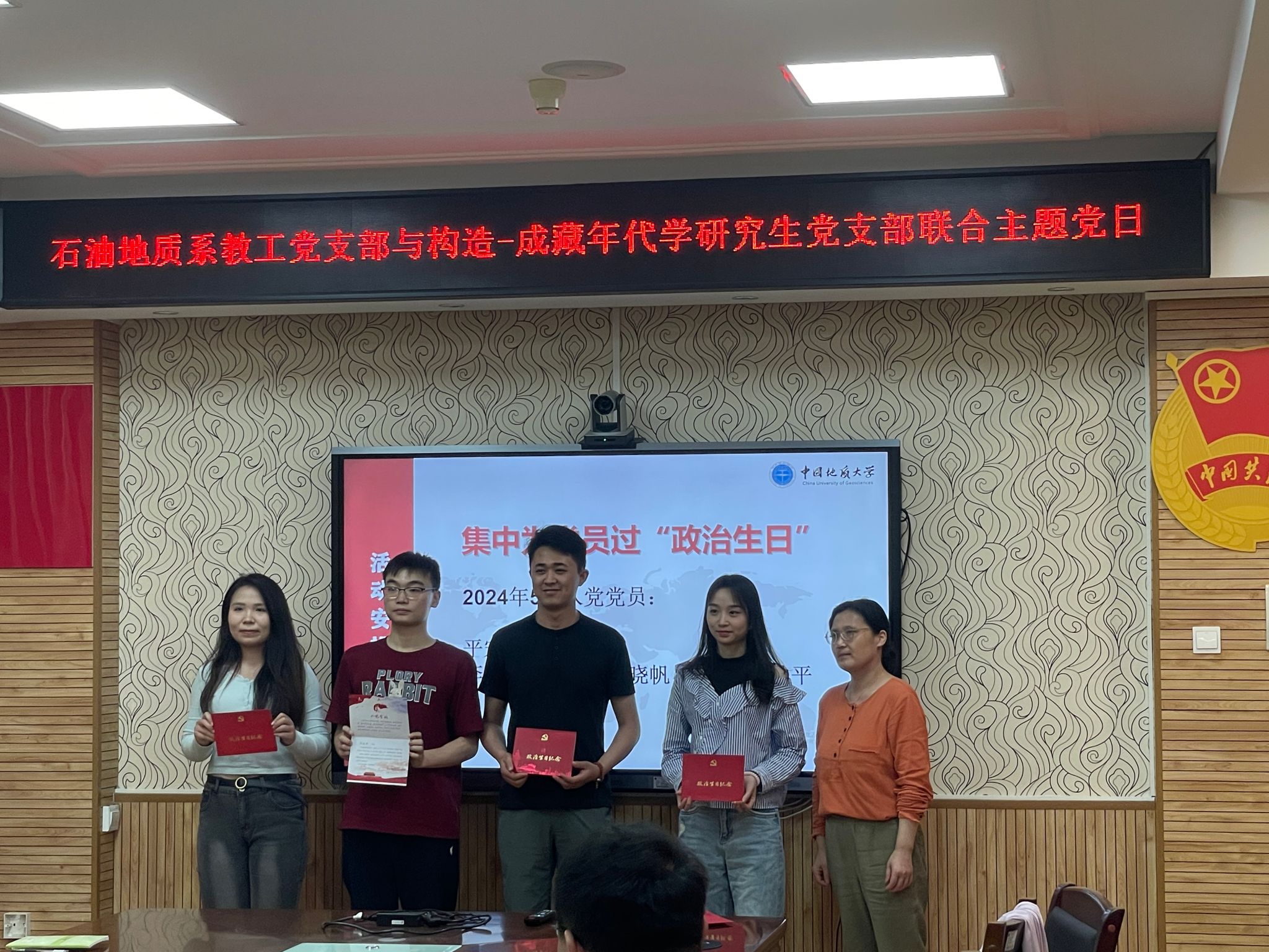 (通讯员 吕志华)5月30日下午,石油地质系教工党支部与构造-成藏年代学研究生党支部联合开展“牢记殷殷嘱托 培育时代新人”主题党日活动,学院副院长沈传波、石油地质系教工党支部书记胡守志分别向师生党员讲党纪学习教育专题党课。胡守志主持会议。