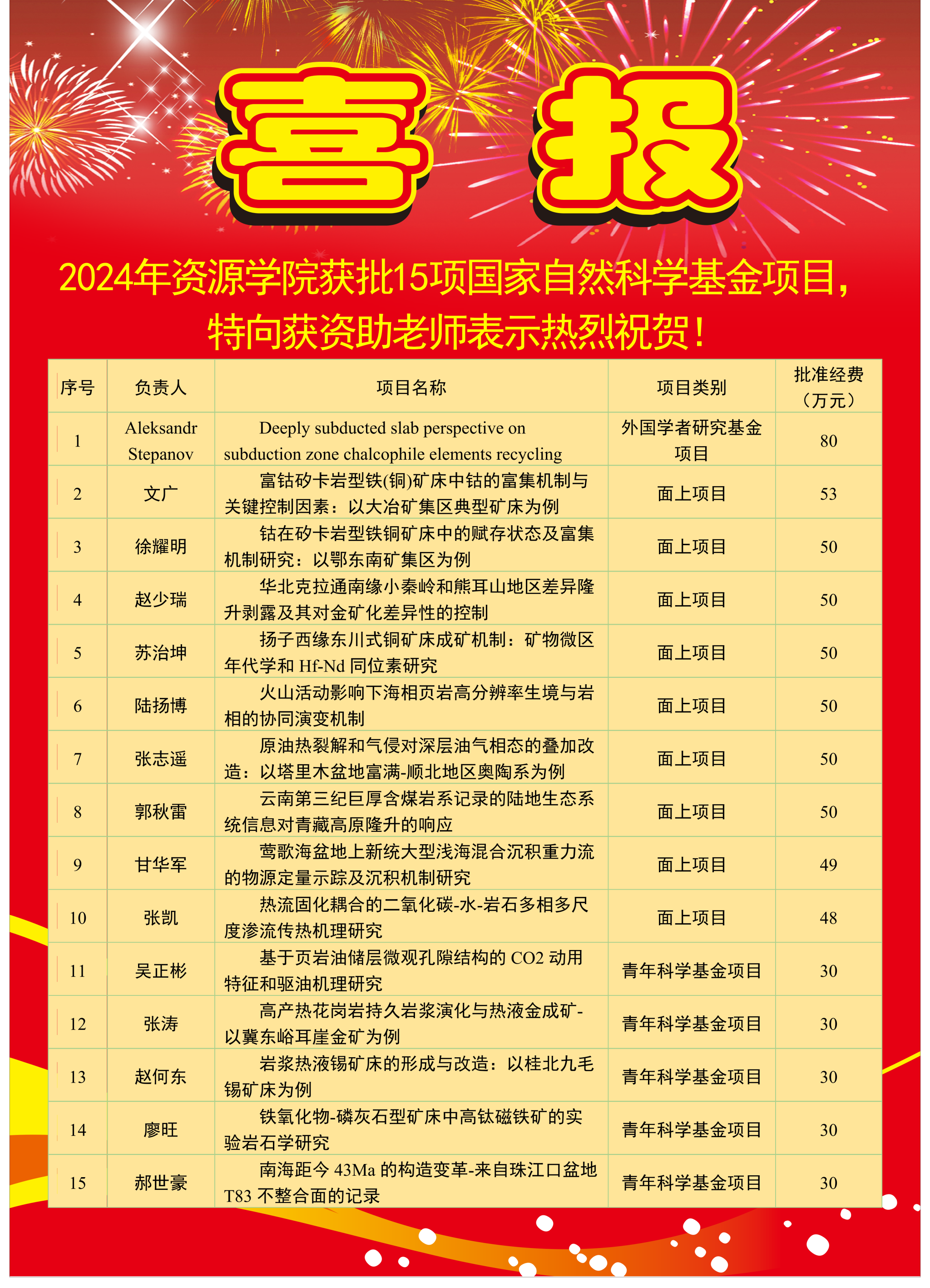 8月23日,国家自然科学基金委员会公布了2024年集中接收期项目评审结果,williamhill英国共有15个项目获得立项资助。其中,外国学者研究基金项目1项、面上项目9项、青年科学基金项目5项,批准直接经费680万元。