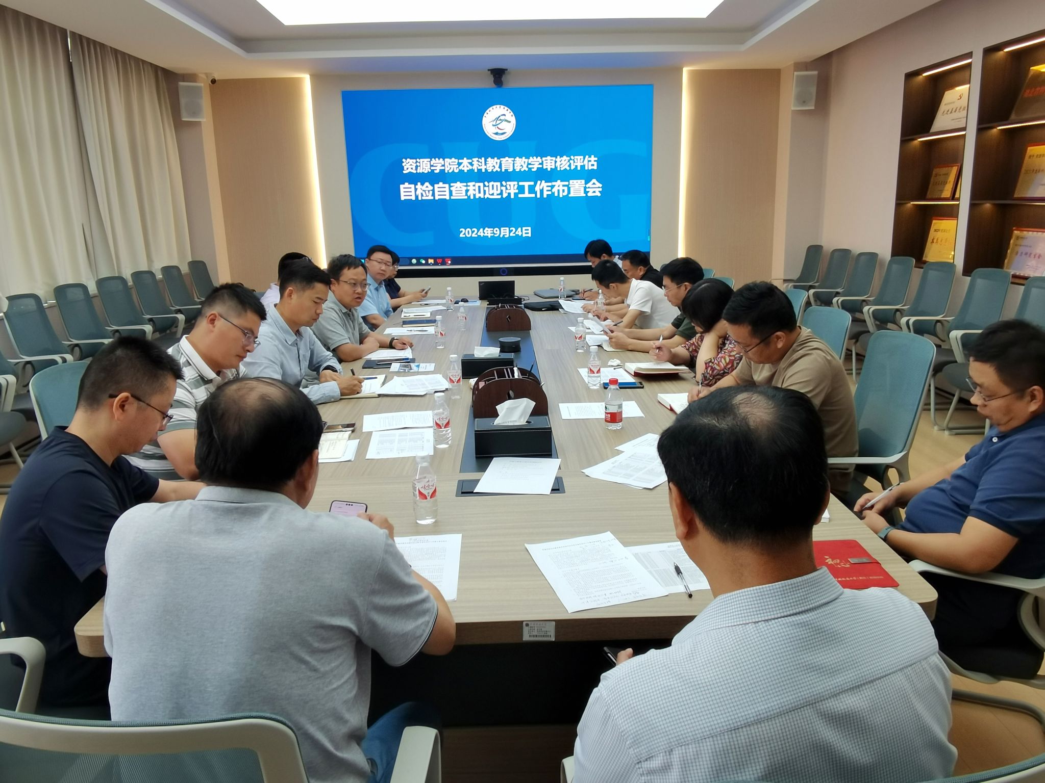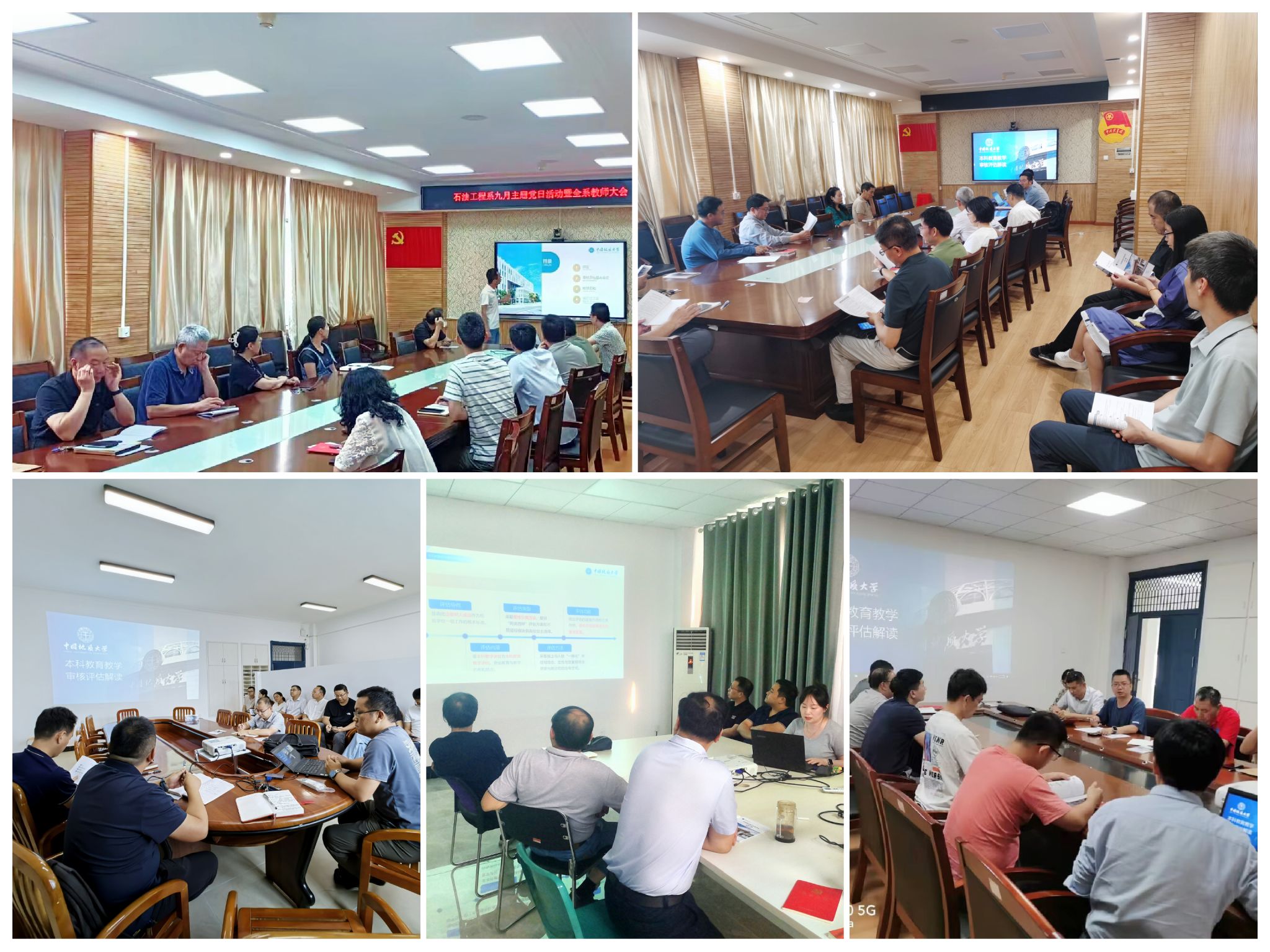 会后,教务科和各系结合上一轮检查问题的整改情况继续推进自查互查教学档案工作,并审核近期归档材料;各系召开教师大会,教学副主任领学本科教育教学审核评估解读材料。