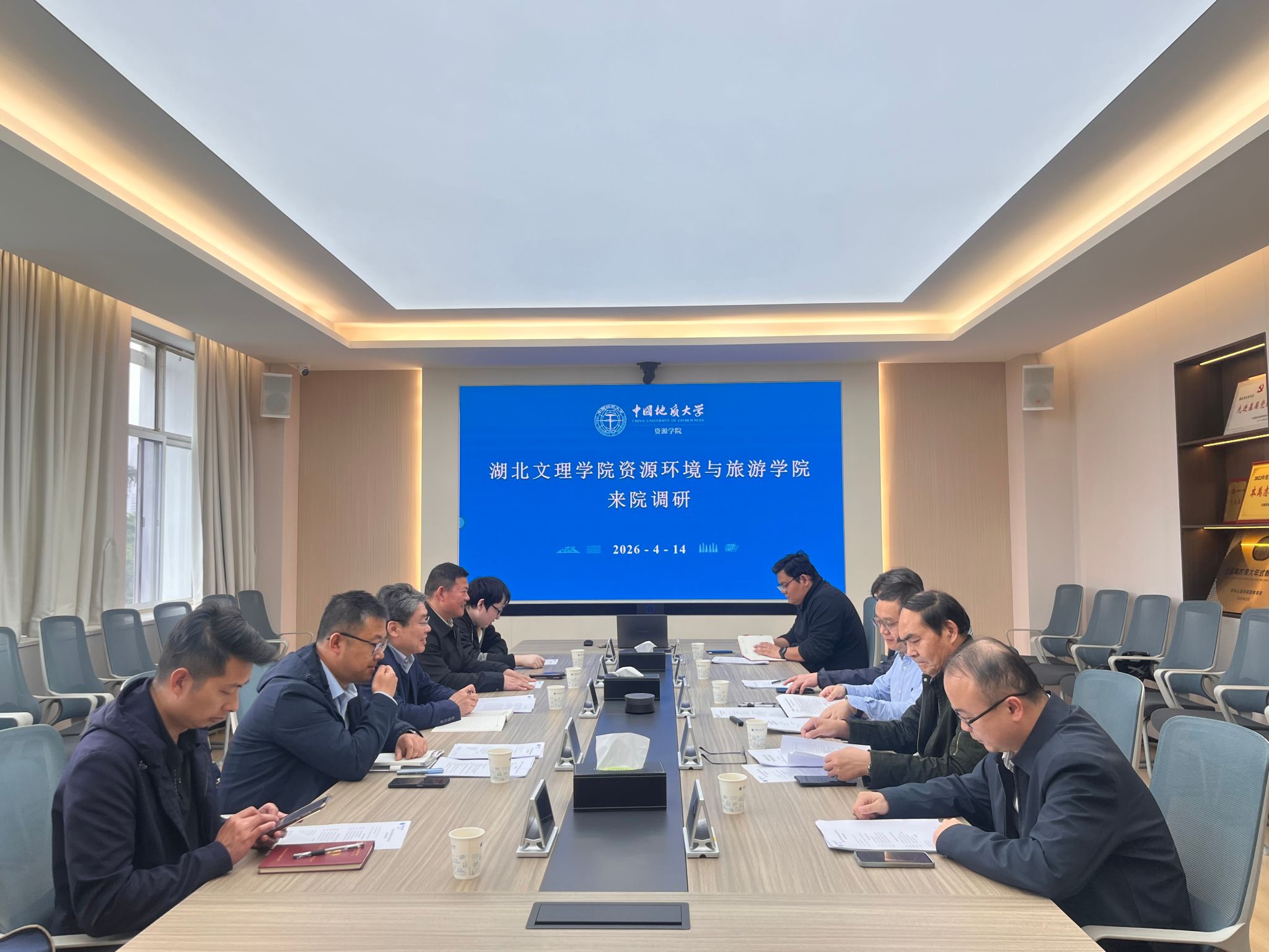 4 月 14 日,湖北文理学院资源环境与旅游学院院长张弢、副院长曹正琦一行来院调研。williamhill英国副院长沈传波,资源信息工程系主任陈建国、专业负责人夏庆霖以及双方相关单位负责人、教师代表参加座谈。